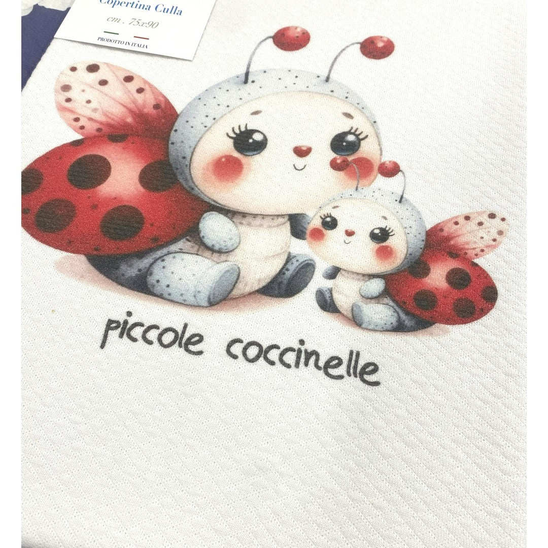 Gary Copertina Neonato 100% cotone tinta unita stampa coccinelle rosso 75×90