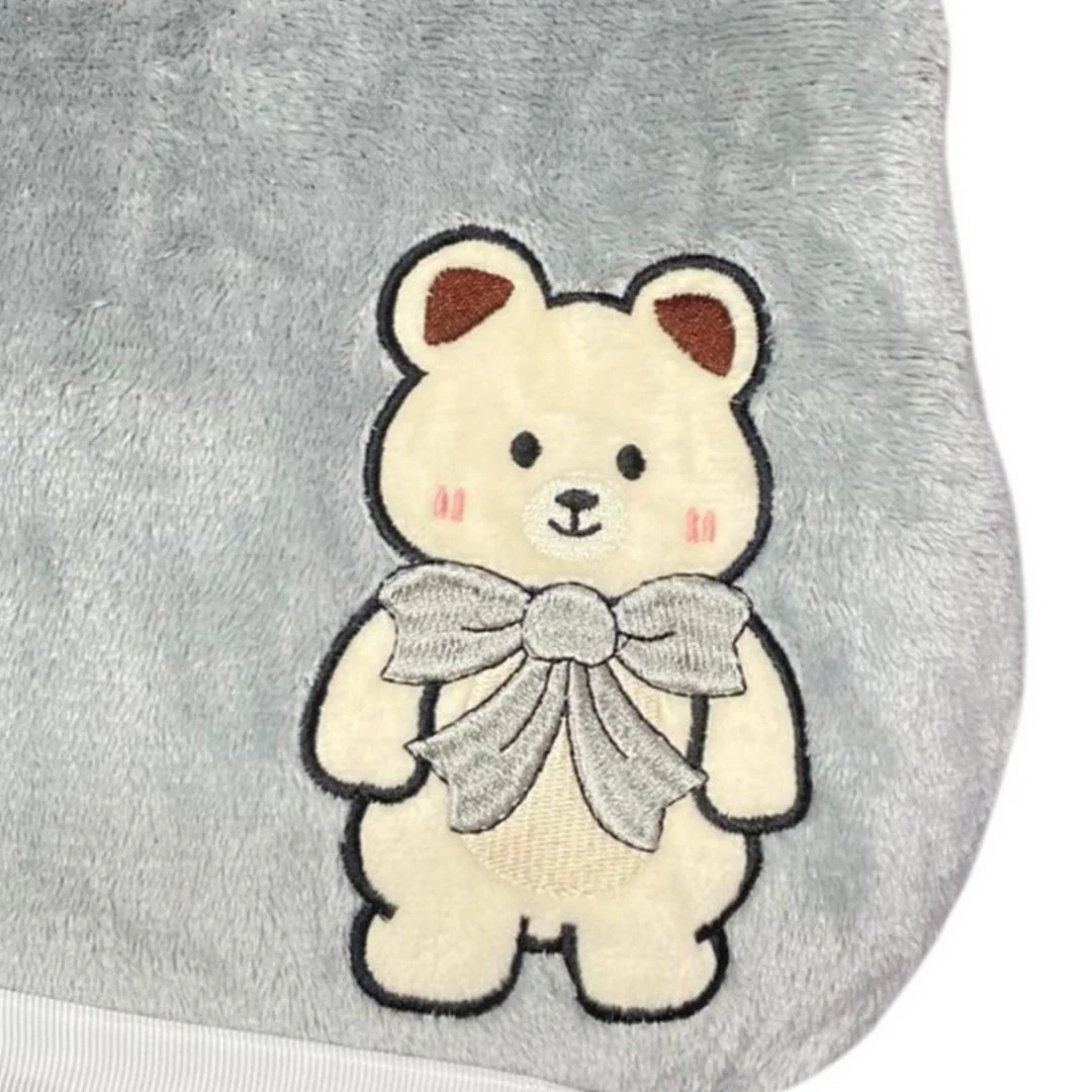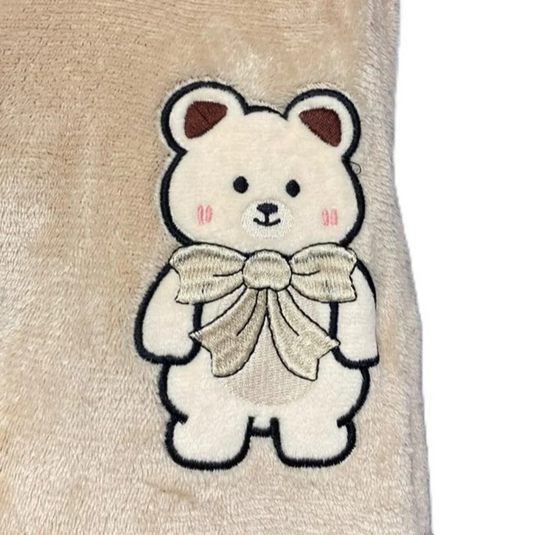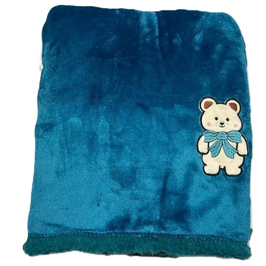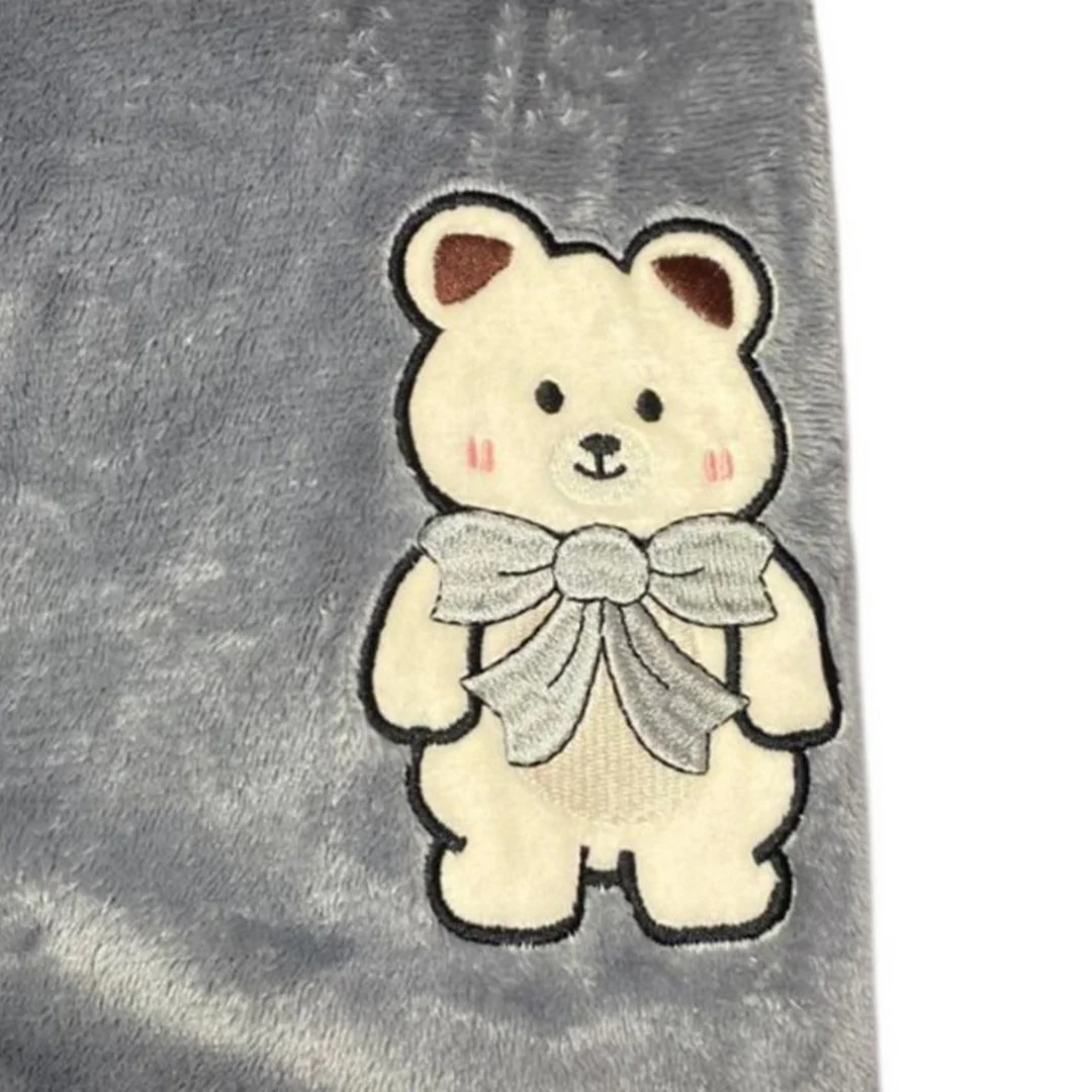 Plaid caldo e morbidissimo, impreziosito da un dolce orsetto ricamato.