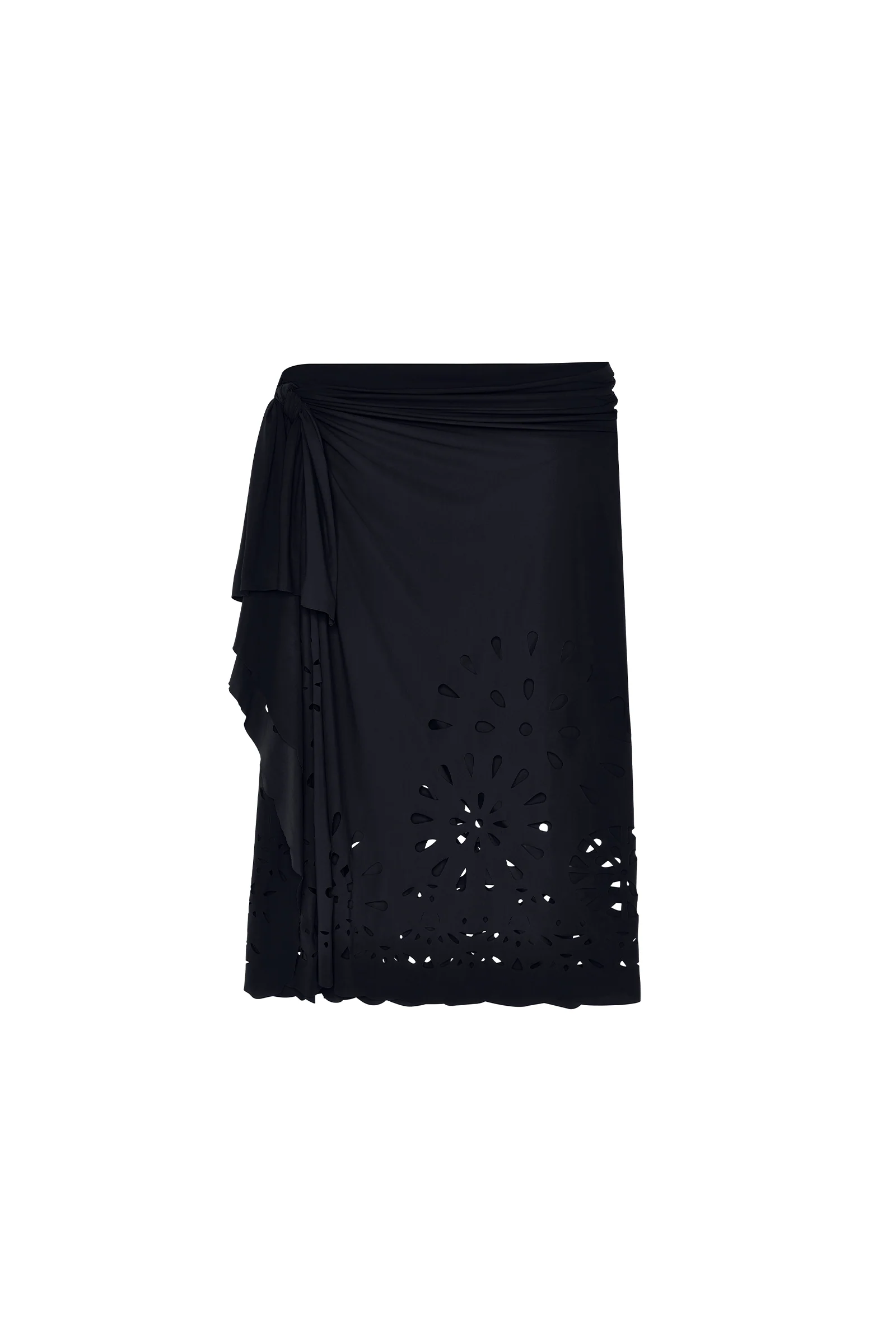 With its thin cuts revealing entwined rosettes, the long pareo KEYA is a graphic piece that gives style. Tied around the waist or on the bust, this key piece can be worn on all occasions. Black, a timeless colour that is always elegant.