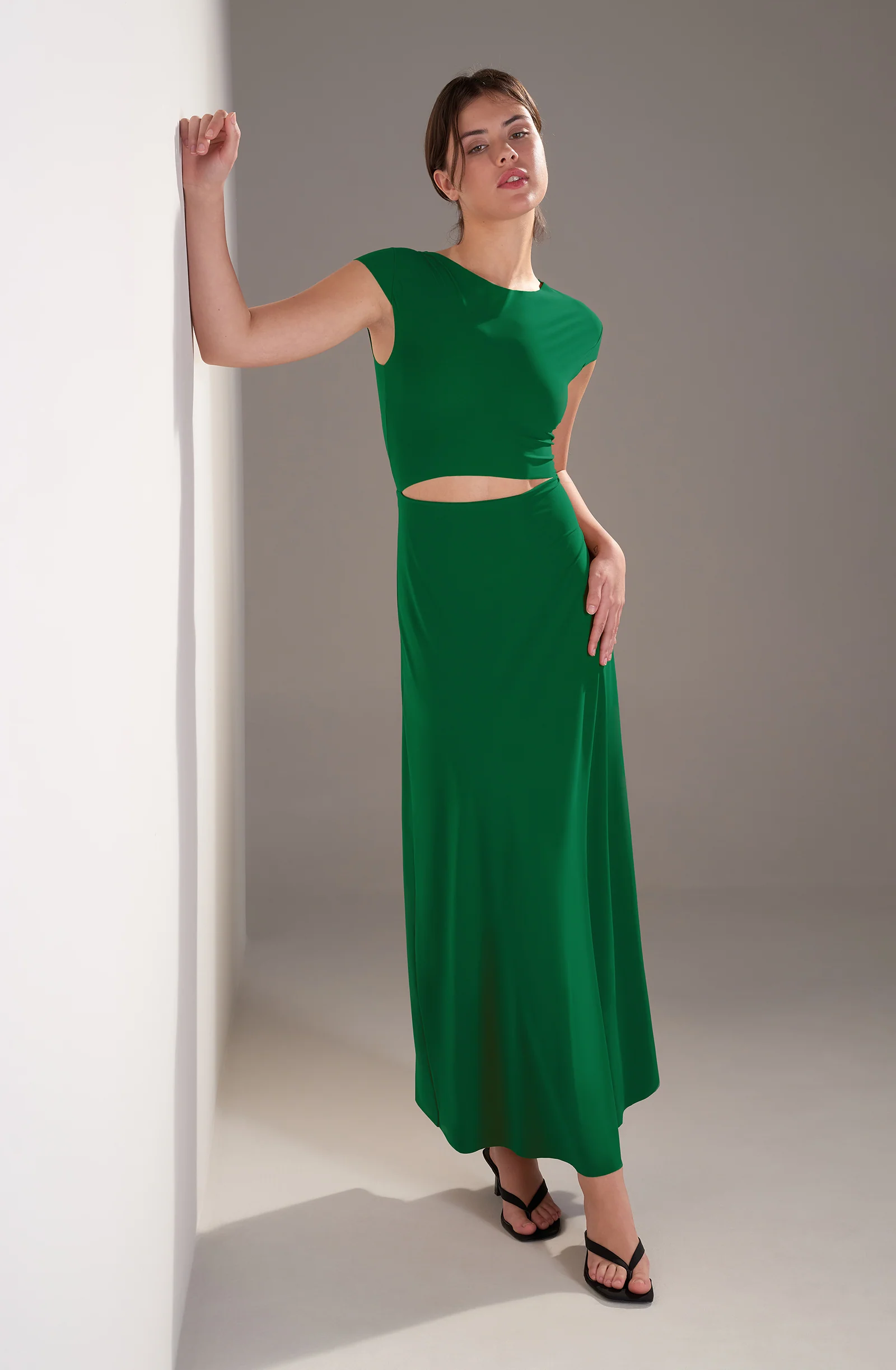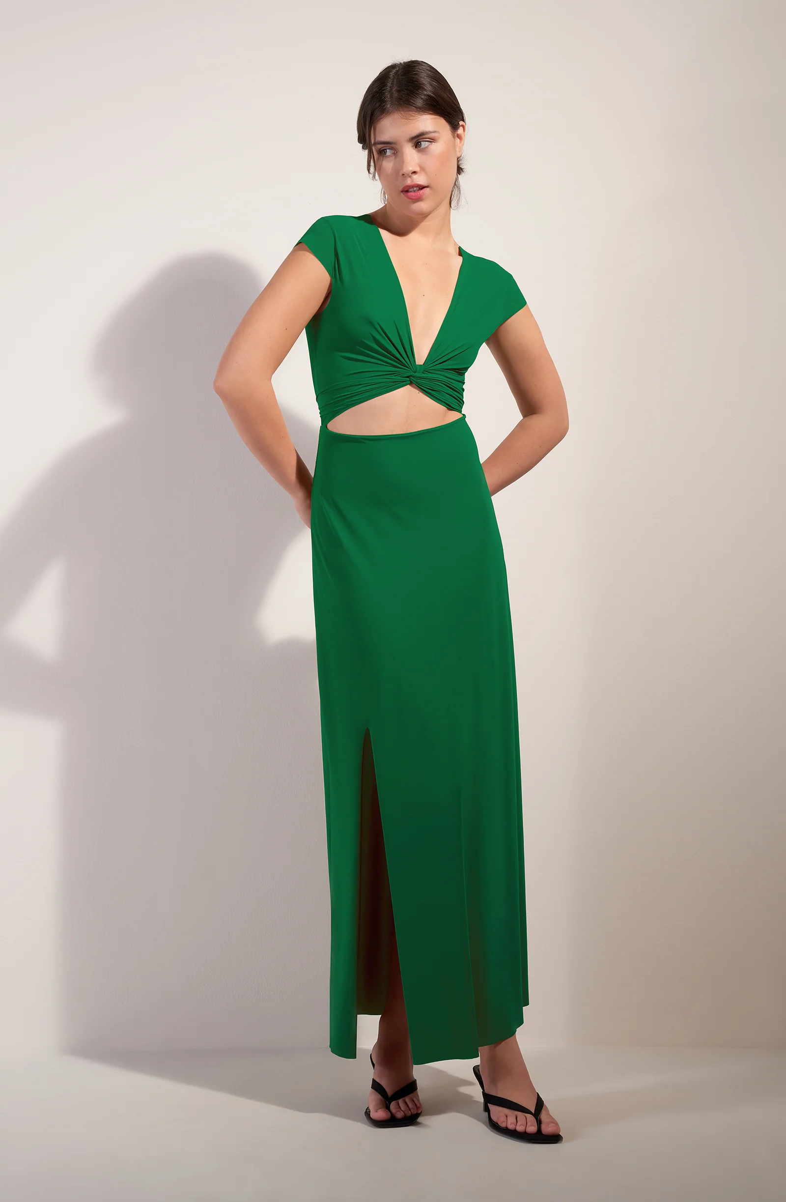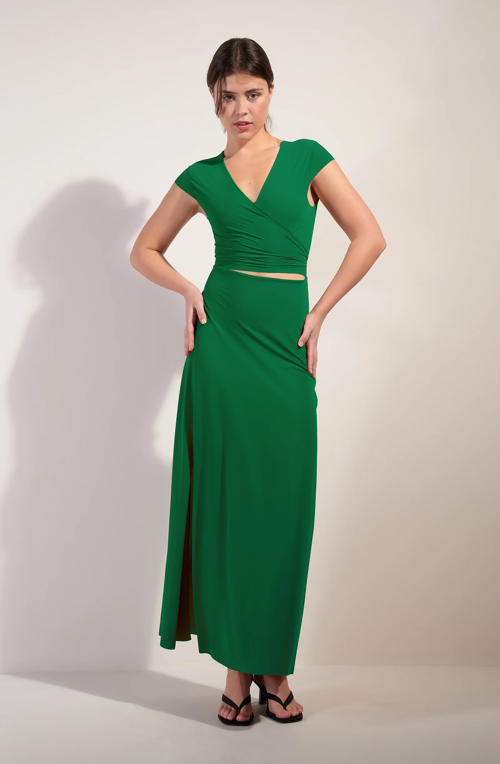 La robe longue et fluide KOLIL combine crop-top et jupe droite pour une silhouette élancée. Toute en légèreté, elle se porte devant-derrière et se noue de multiples façons. Jeu subtil de décolletés, elle change de style au gré des envies. Jade, un vert prononcé intensément doux et lumineux.