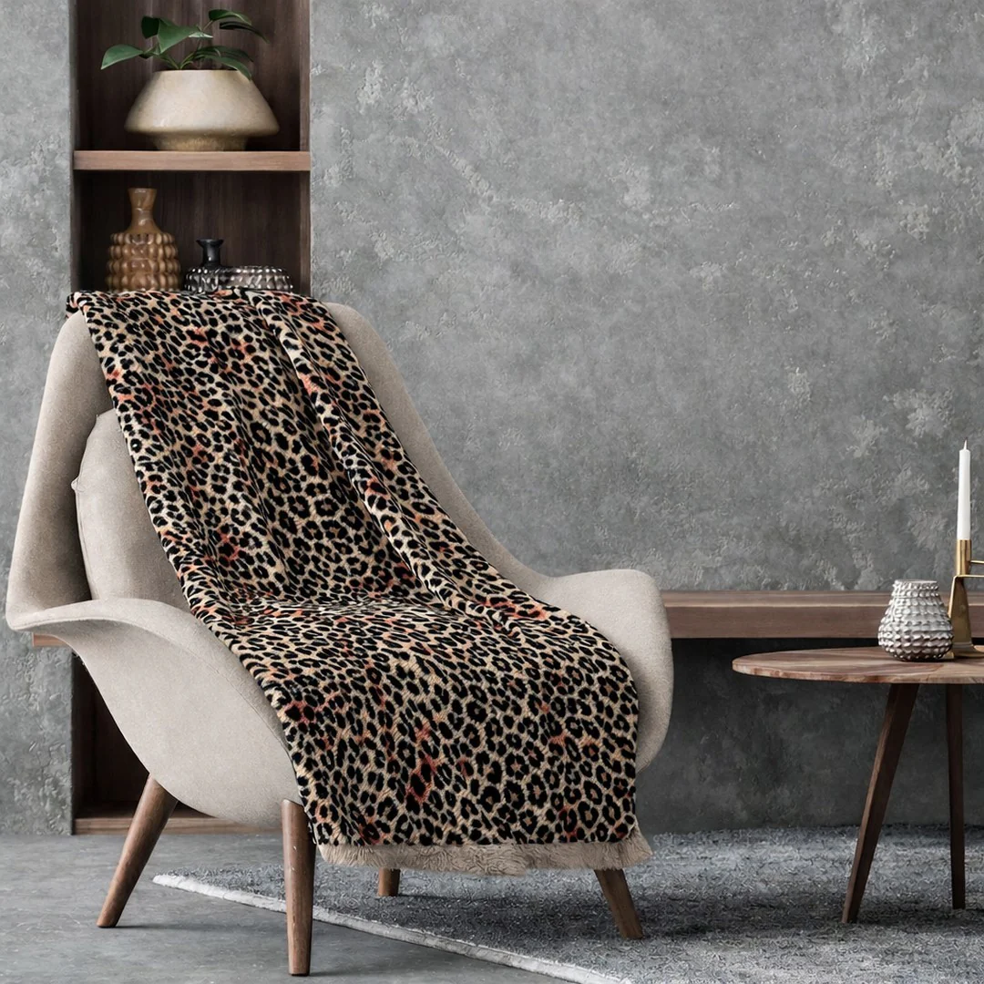 Linea Oro Plaid Jacquard Jean Animalier con Retro Effetto Lana Morbido e Caldo