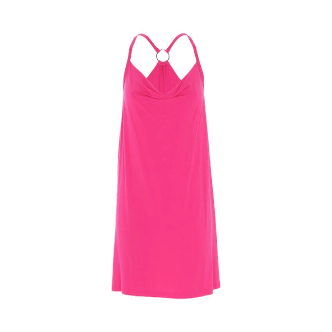 Rinnova il tuo look estivo con il nostro abitino dal morbido scollo. L’accessorio logato sul retro e il dettaglio decorativo in metallo fucsia aggiungono un tocco di glamour. Realizzato in jersey di viscosa, questo abito fa parte della nostra collezione beachwear.