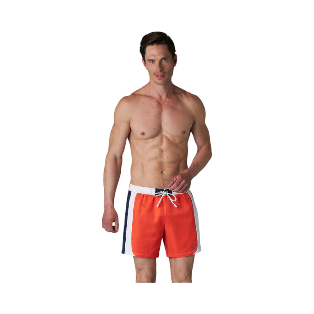 Costume boxer twill waterproof arancione: comfort e stile in ogni nuotata! Con elastico su tutta la vita e coulisse regolabile per la massima adattabilità. Pratiche tasche sul fianco per tenere gli oggetti essenziali sempre con te. Gli inserti in contrasto colore aggiungono un tocco di vivacità. Lunghezza gamba di 40 cm per una copertura ottimale. Scopri il perfetto equilibrio tra funzionalità e moda per la tua prossima avventura in acqua!