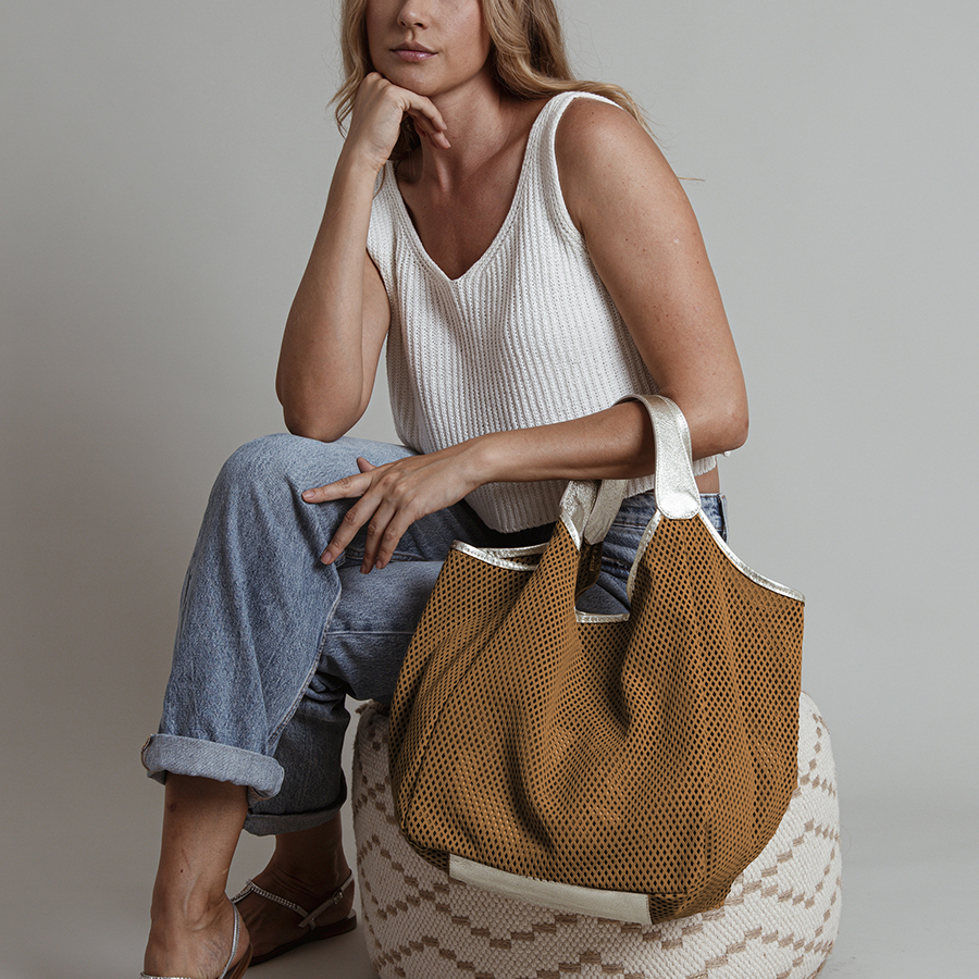 MAINE – Maxi shopping in camoscio intagliato cuoio