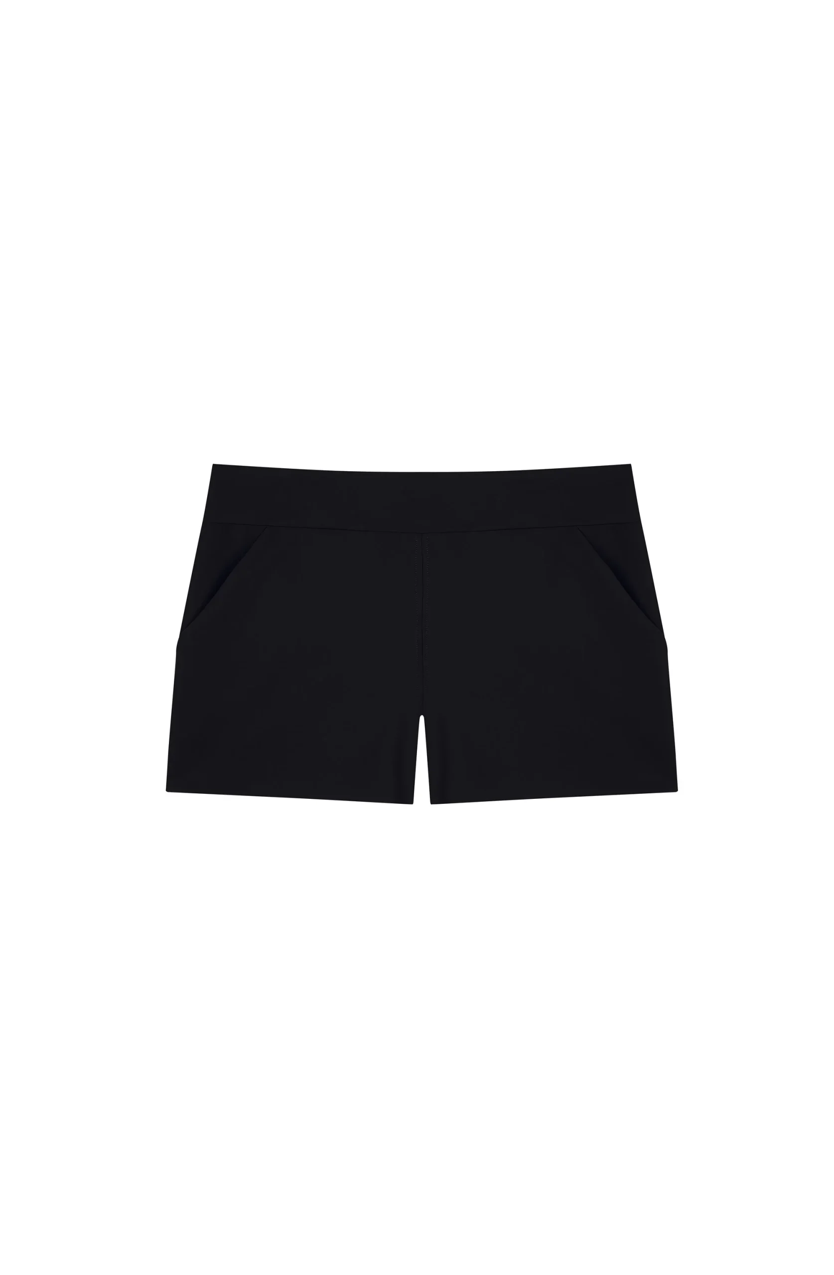 Loose black fully Bonded shorts. Wide waistband, 2 pockets on the sides.