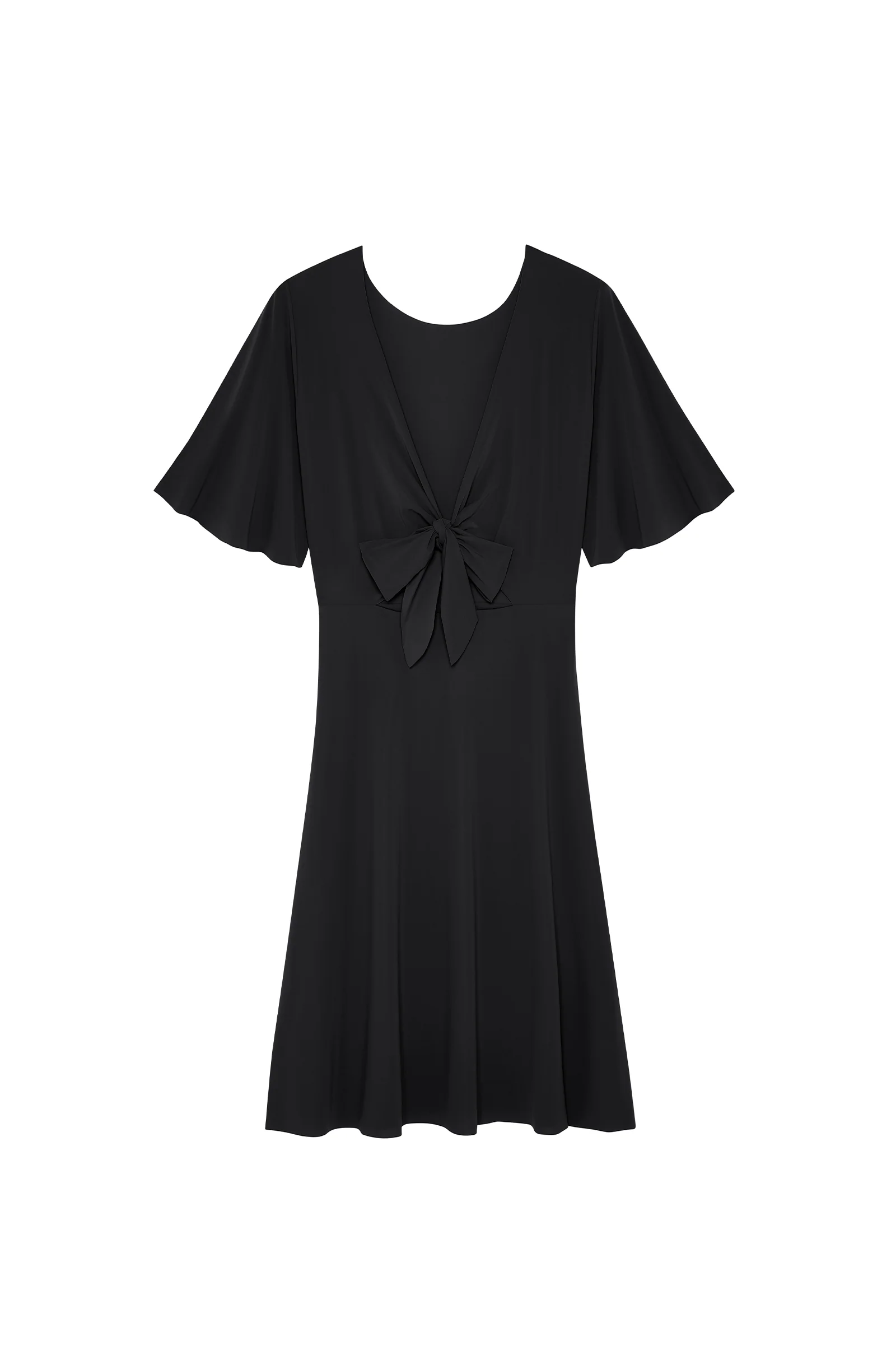Short dress with flared sleeves Round neckline Tied at the front Can be worn front to back With its small butterfly sleeves, the NATT short dress, crafted from light voile, is a gem of lightness. It can be worn both ways to play with the décolletage, featuring a tie front with a wrap-effect design. Jade, […]