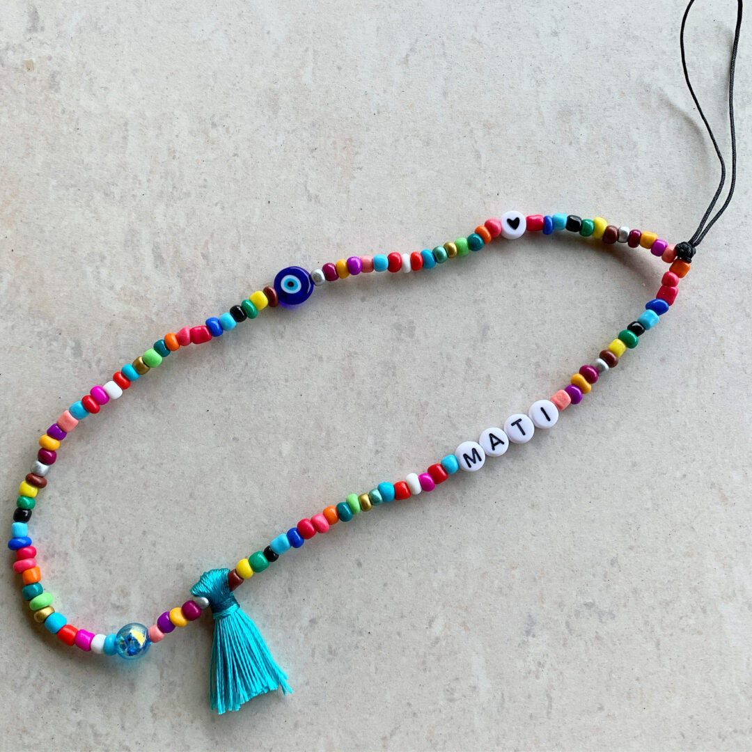 Phonebeads con microperline in vetro. Laccio con perline multicolor, personalizzabile per telefono. Variante unica. Scegli il colore della nappina (fucsia, turchese, giallo, grigio, aranciofluo, rosa, azzurro polvere, rosa antico, sabbia) e scrivilo nelle note. Misura 40 cm. Personalizzalo con il tuo nome o quello che vuoi tu! Fino a 5 lettere. Inserisci le lettere nelle note. Tempo di realizzo/spedizione fino a 5 giorni lavorativi. Per ulteriori informazioni, o variazioni particolari, contattaci per email [email protected] PRODOTTO PERSONALIZZATO. NON SI EFFETTUANO RESI.