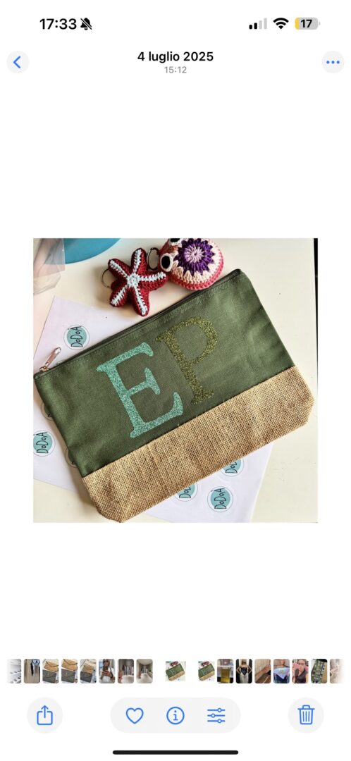Pochette personalizzata. Milleusi. Puoi utilizzarla come pochette, come beauty o come vuoi tu. Comoda e pratica, uno dei nostri best-seller. Unisex. 28 x 19 x 8 cm Puoi personalizzare con le tue iniziali, il tuo nome o una frase. Seleziona il colore della tua pochette, Poi scrivi nelle note le tue iniziali, il tuo nome o la tua frase preferita e anche il colore di stampa. Puoi scegliere 1 o 2 colori tra quelli elencati qui sotto. Colori Glitter: dark silver, argento, oro, bronzo, arancio, azzurro, verde, rosso, rosa, multicolor, nero, bianco. Colori Laminati: oro, argento, bronzo, tortora. Colori Opachi:…