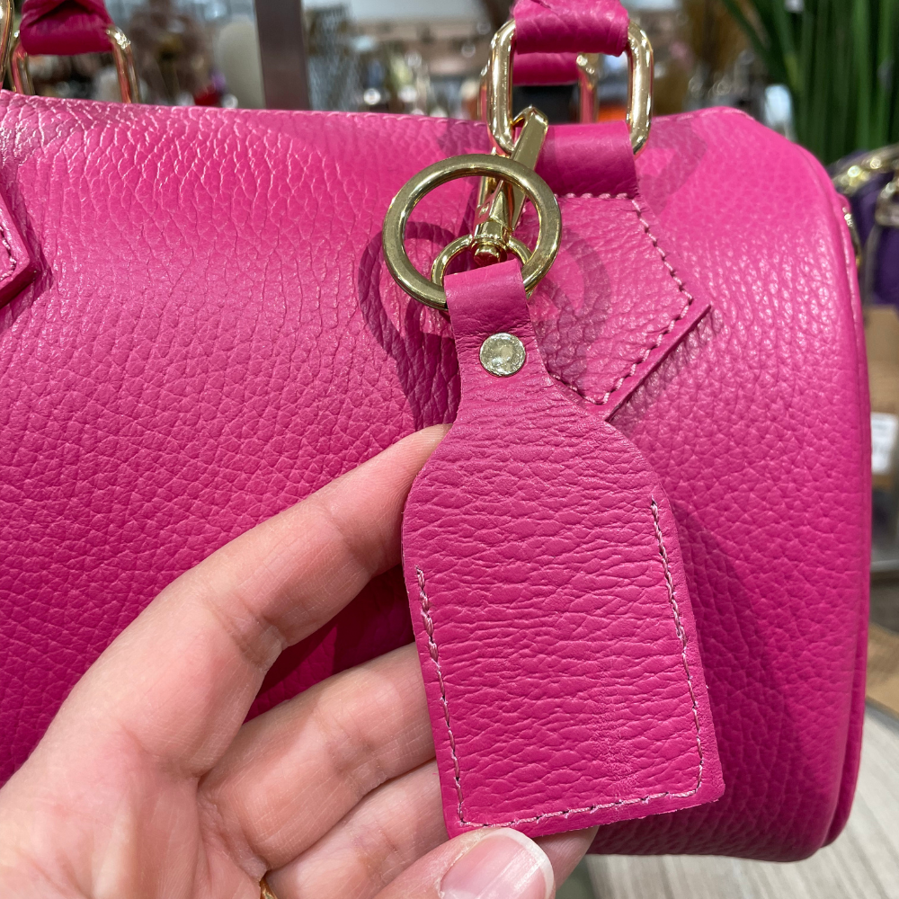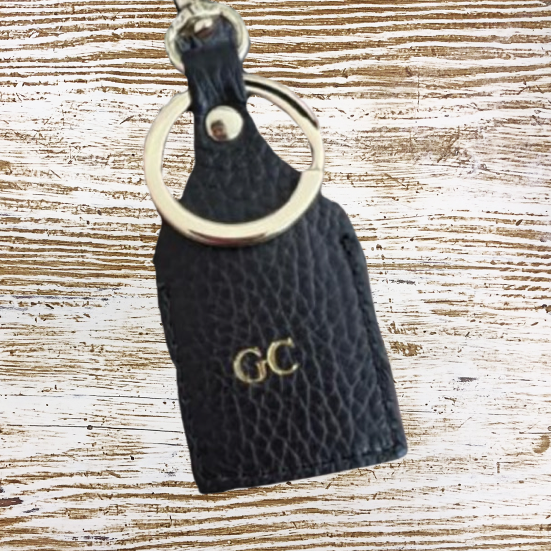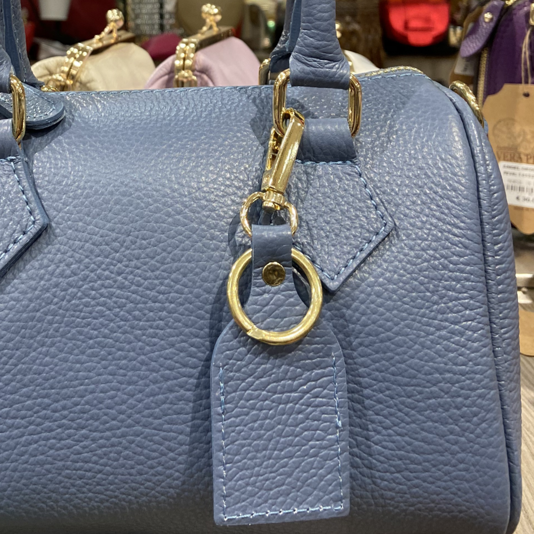 Dopo aver scelto il bauletto indica le iniziali da stampare sul portachiavi. Il portachiavi è in vera pelle come la borsa bauletto