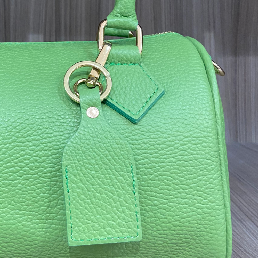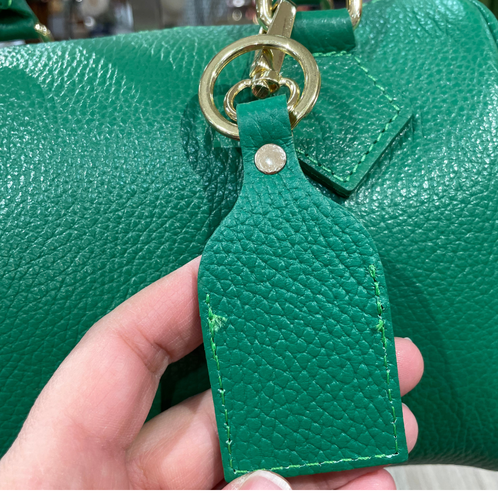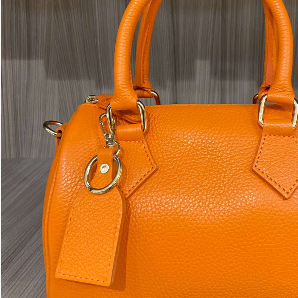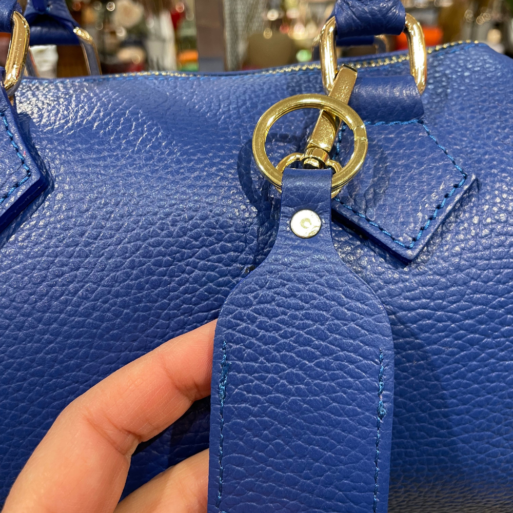 Dopo aver scelto il bauletto indica le iniziali da stampare sul portachiavi. Il portachiavi è in vera pelle come la borsa bauletto
