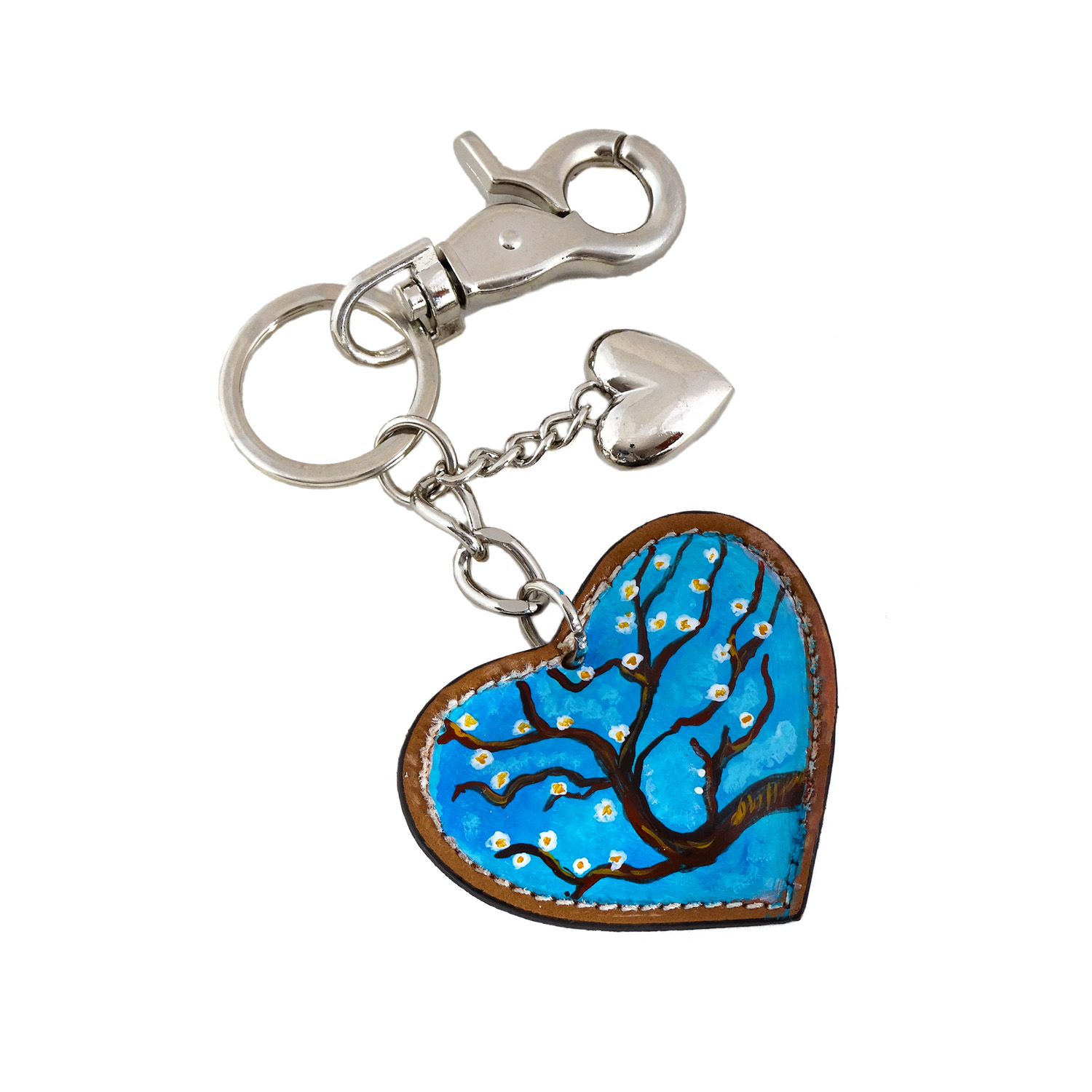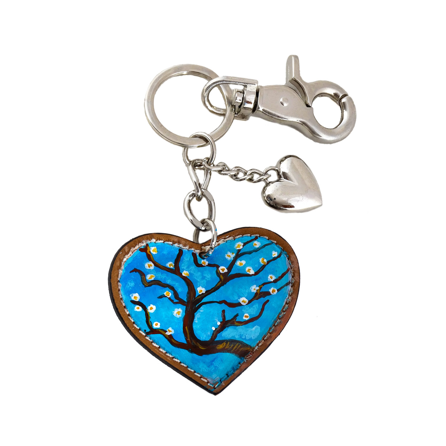 Portachiavi dipinto a mano – Il mandorlo di Van Gogh: Il delicato mandorlo in fiore di Van Gogh, simbolo di rinnovamento e primavera colora un delizioso portachiavi.