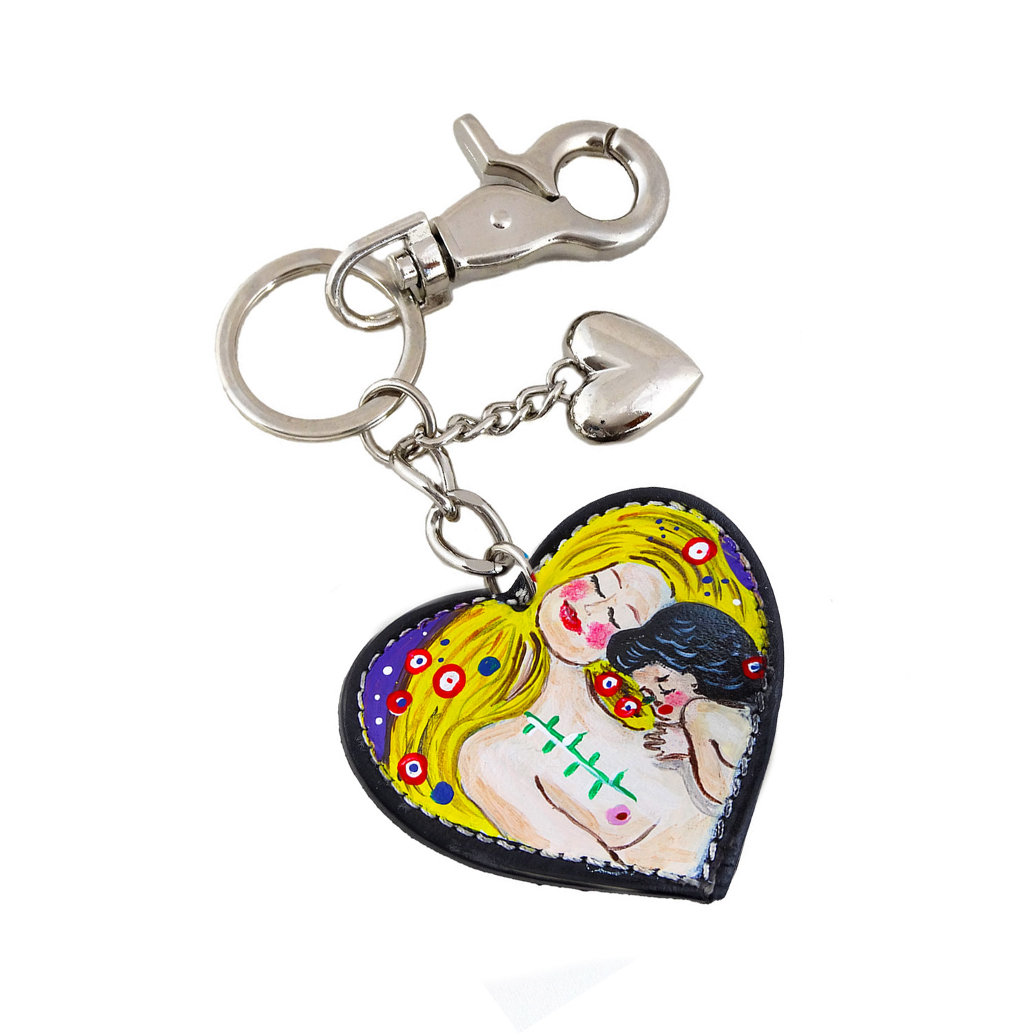 Portachiavi dipinto a mano – Madre e figlio di Klimt: Piccole pennellate per un grandioso portachiavi con un dettaglio della maternità di Klimt