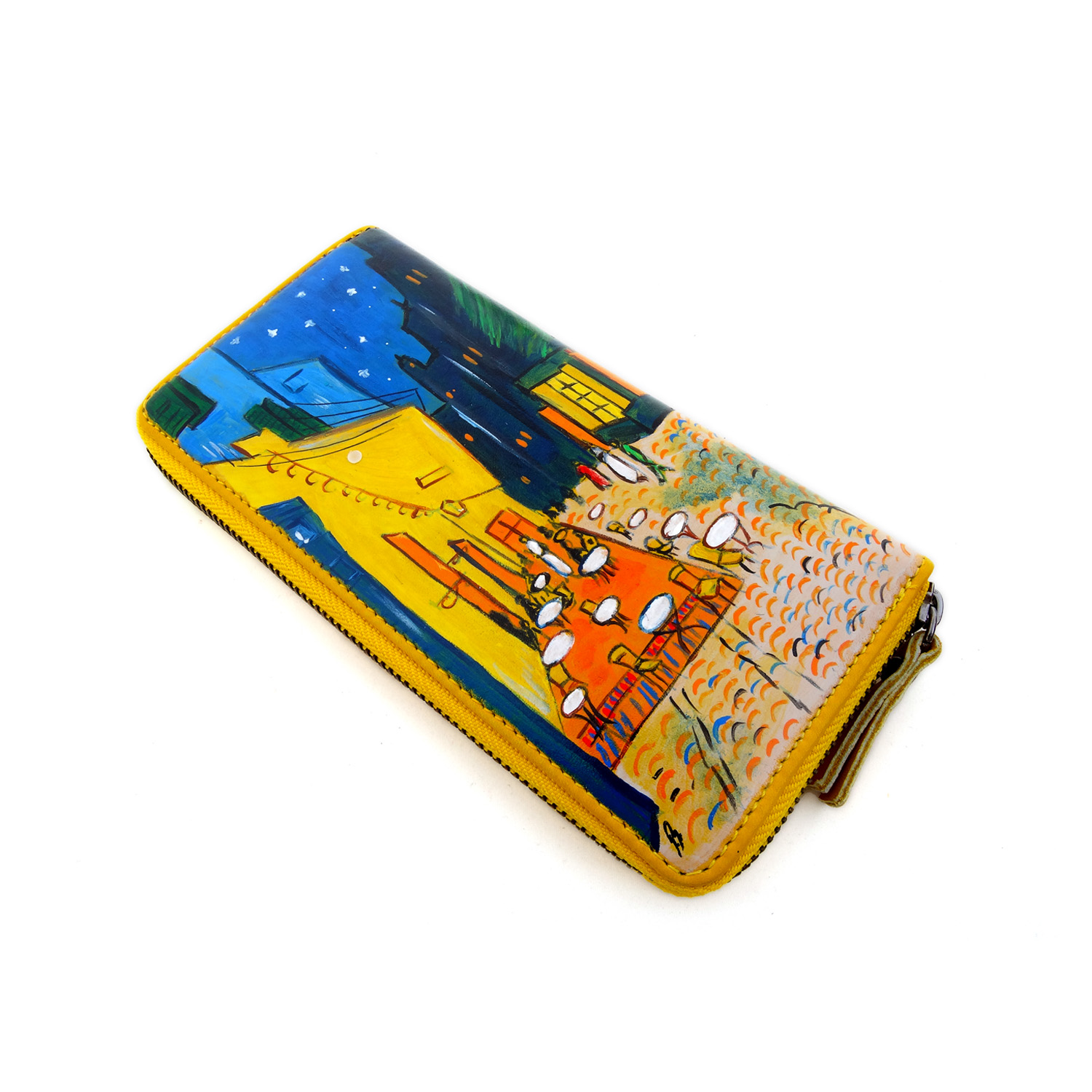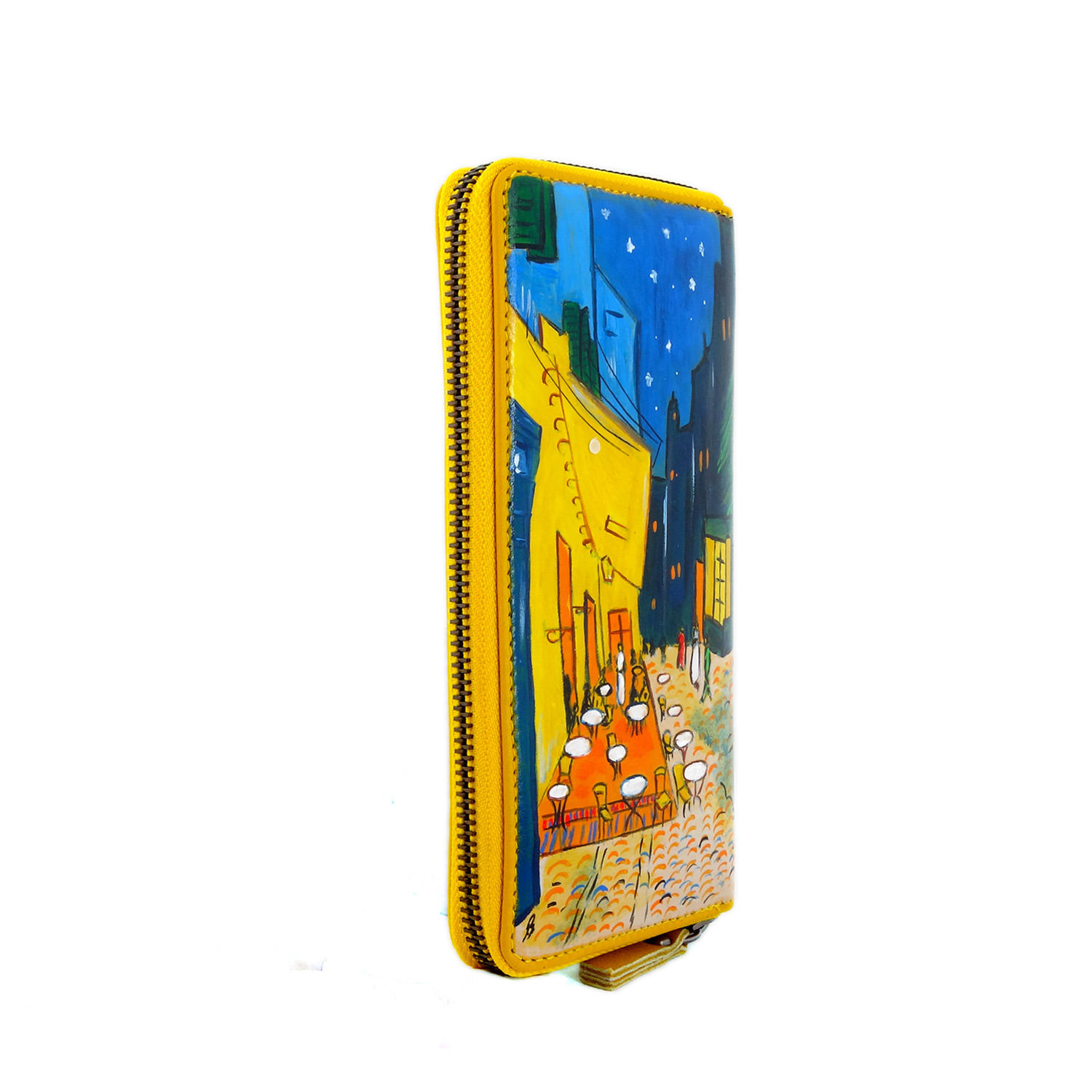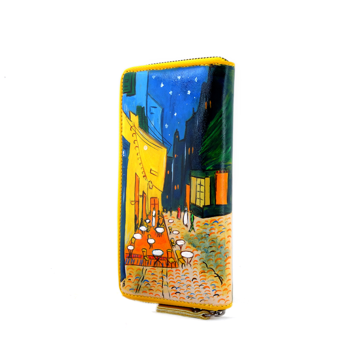 Portafoglio dipinto Caffè di notte di Van Gogh : Anche chiamato “Terrazza del caffè la sera” è un celebre dipinto di Van Gogh vibrante e ricco di dettagli, tutto è ripreso con cura e i colori brillanti danno nuova luce.