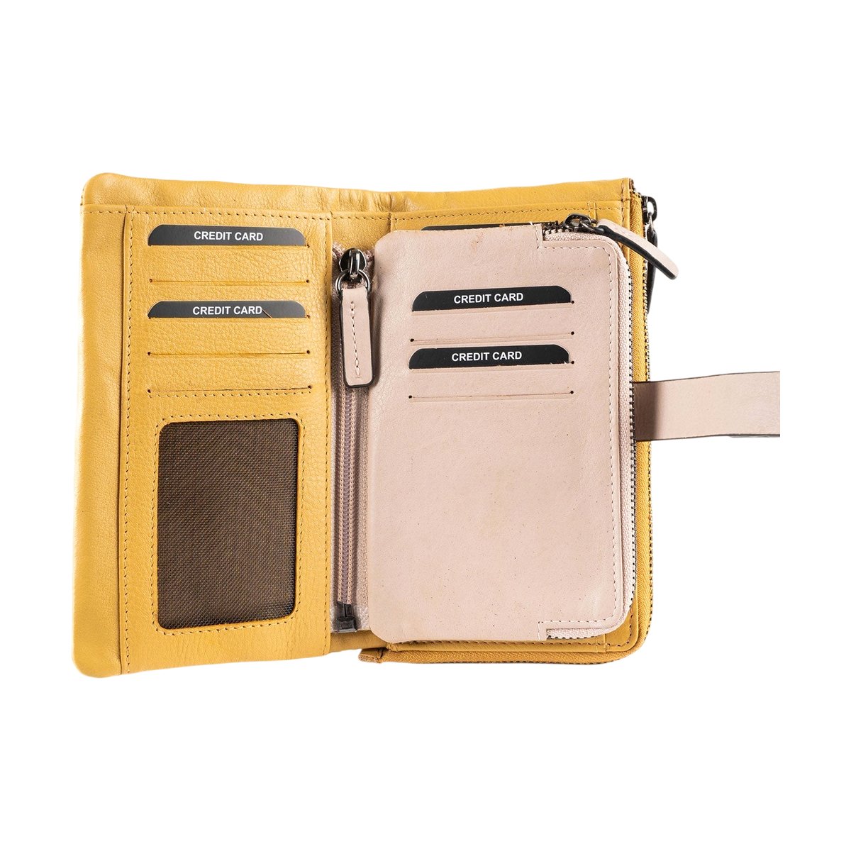 ADA Portafogli in pelle morbida con doppia zip around – Senape