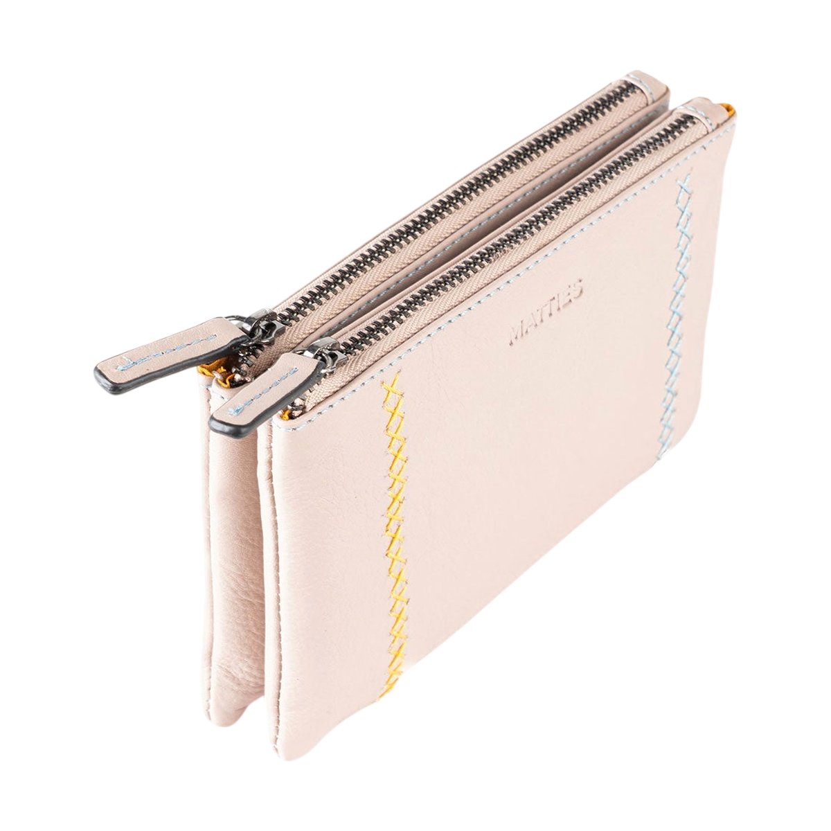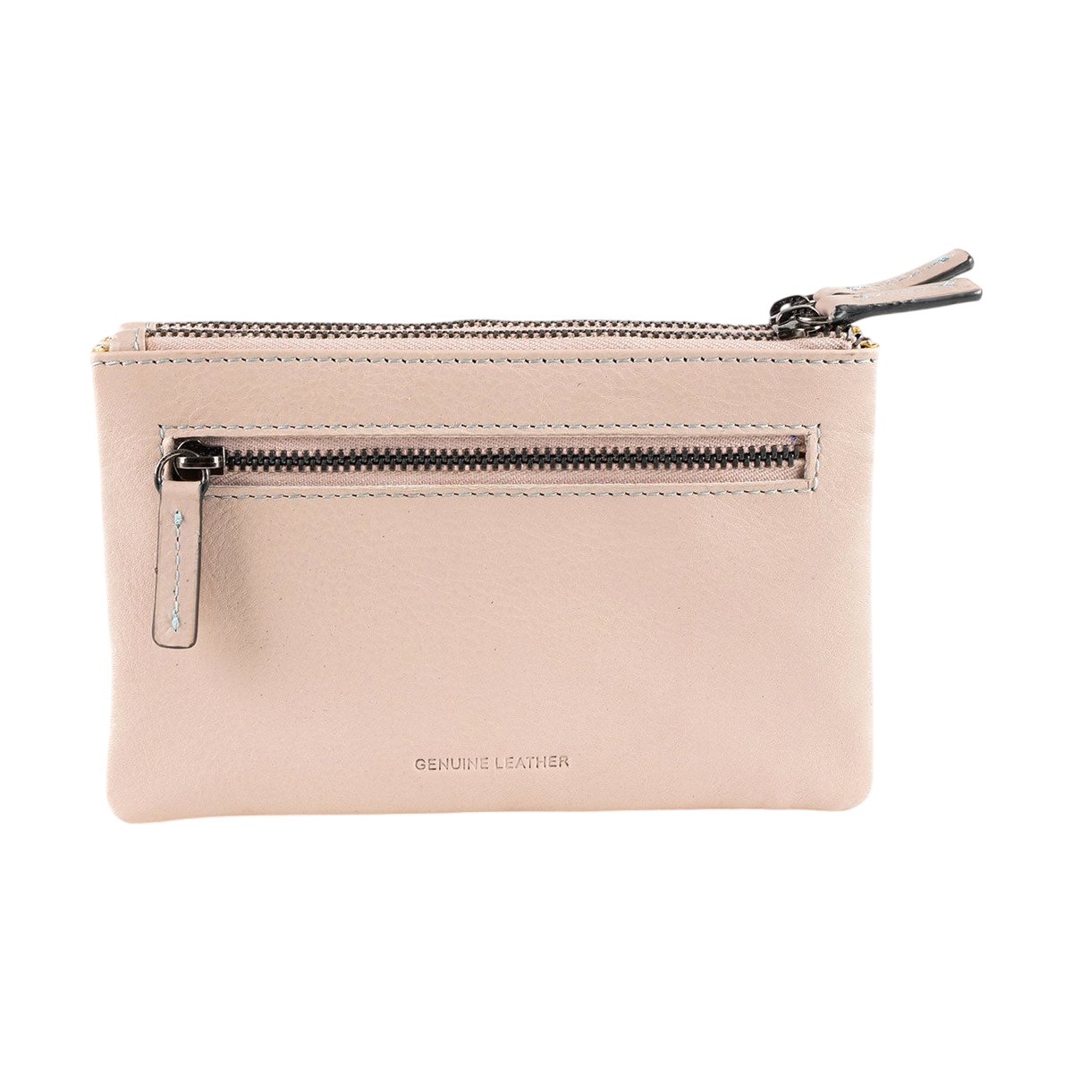 ADA Portafogli in pelle morbida con doppia zip around – Talpa chiaro