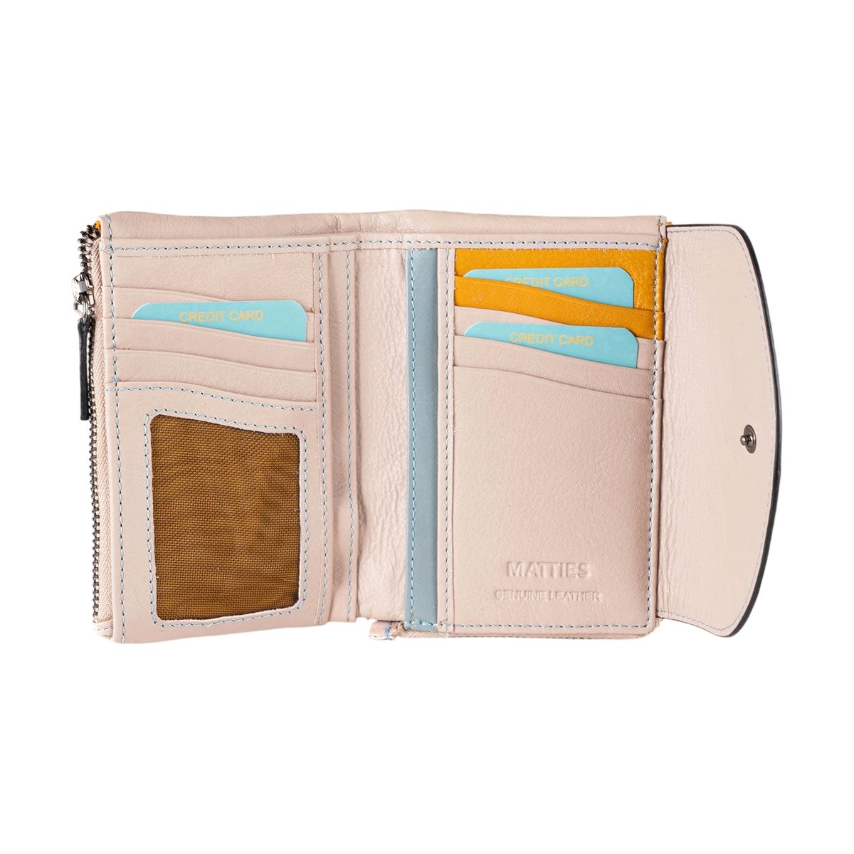 Il portafoglio Stitch di Matties, realizzato in vera pelle beige, presenta cuciture minuziose e una struttura compatta. Gli scomparti interni ti permettono di organizzare carte e contanti con facilità, mentre la chiusura con zip garantisce sicurezza. Perfetto per completare un look elegante o da abbinare a un outfit casual.
