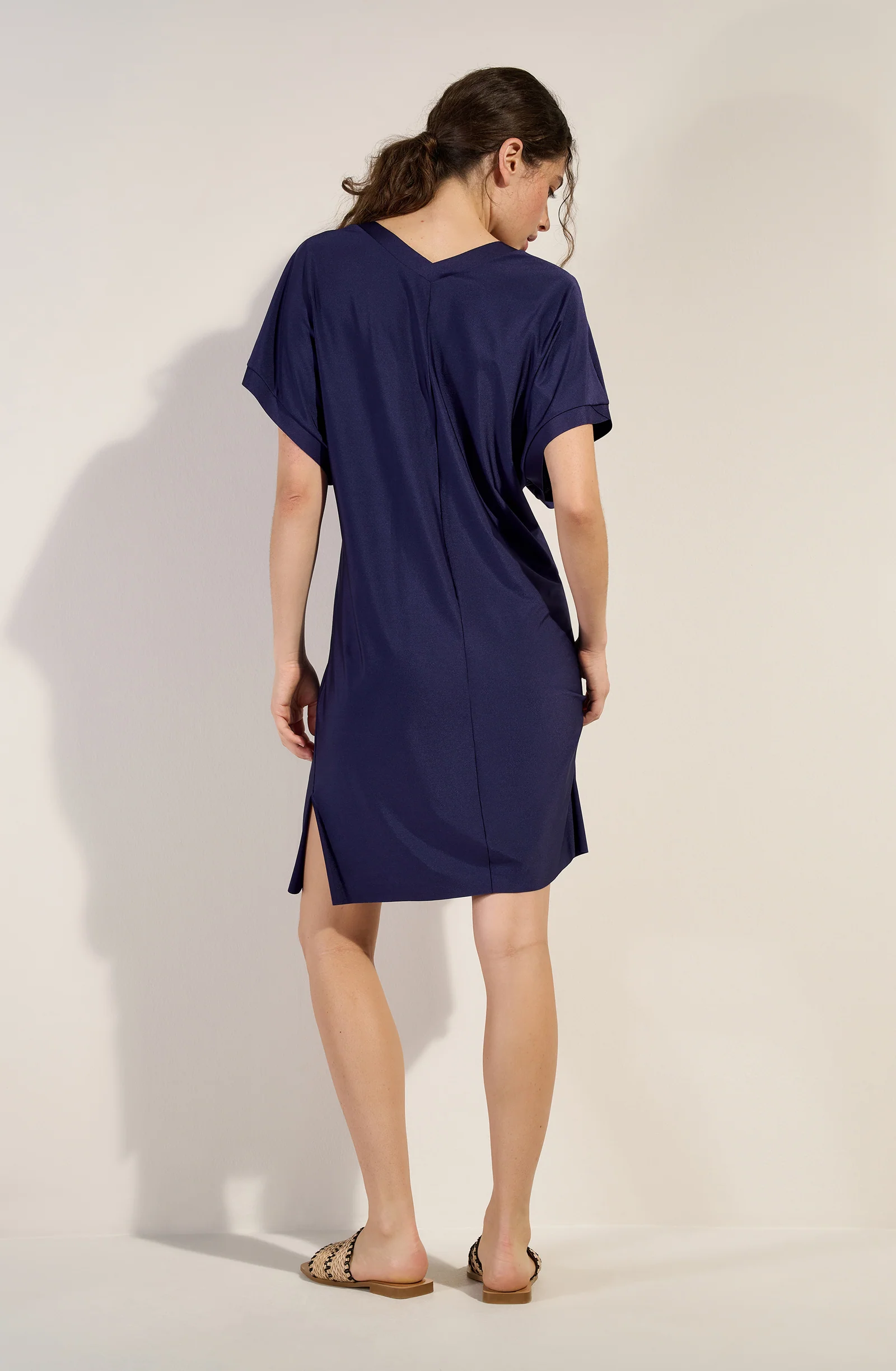 Loose tunic in light lycra voile 3/4 sleeves Bonded neckline and sleeve ends V-neckline at the front and back Side slits Raw cut-out at the bottom The loose PRETTY tunic in lightweight voile is easy to wear thanks to its flared cut. The simplicity of its shape and the free-cut hem make this piece one […]