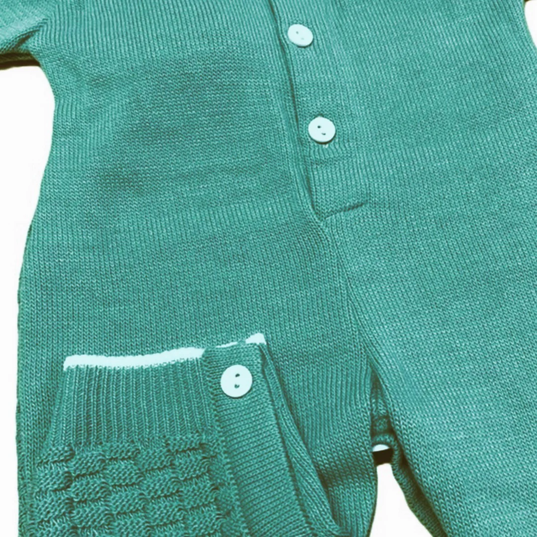 Delicata tutina intera in misto lana, pensata per offrire al tuo neonato comfort, calore e uno stile raffinato fin dai primi giorni di vita. Realizzata nei tenui toni del verde e panna, รจ ideale sia per lโ€™uso quotidiano che per occasioni speciali.