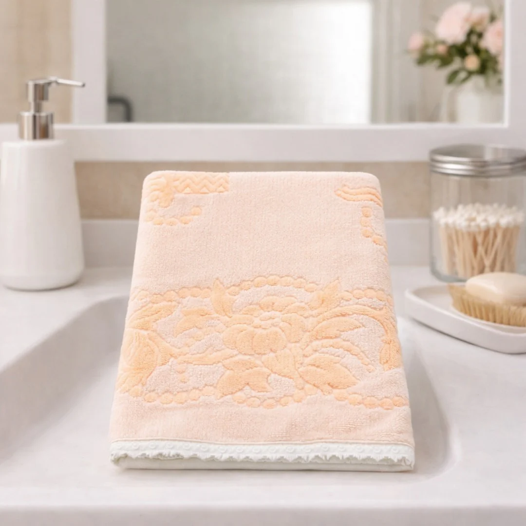 La doppia lavorazione – lato cinigliato e lato a riccio – garantisce comfort e un’asciugatura efficace.