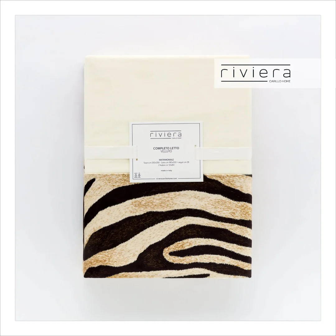 Riviera Completo Lenzuola in Cotone con Balza in Velluto Amir
