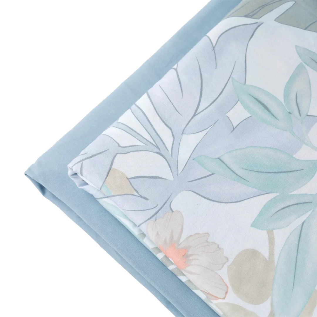 La confezione contiene: lenzuolo sopra e balza in cotone percalle 100% – stampa digitale, sotto con angoli in cotone percalle 100% – tinta unita e due federe double a sacco. Disponibile il trapuntino coordinabile.