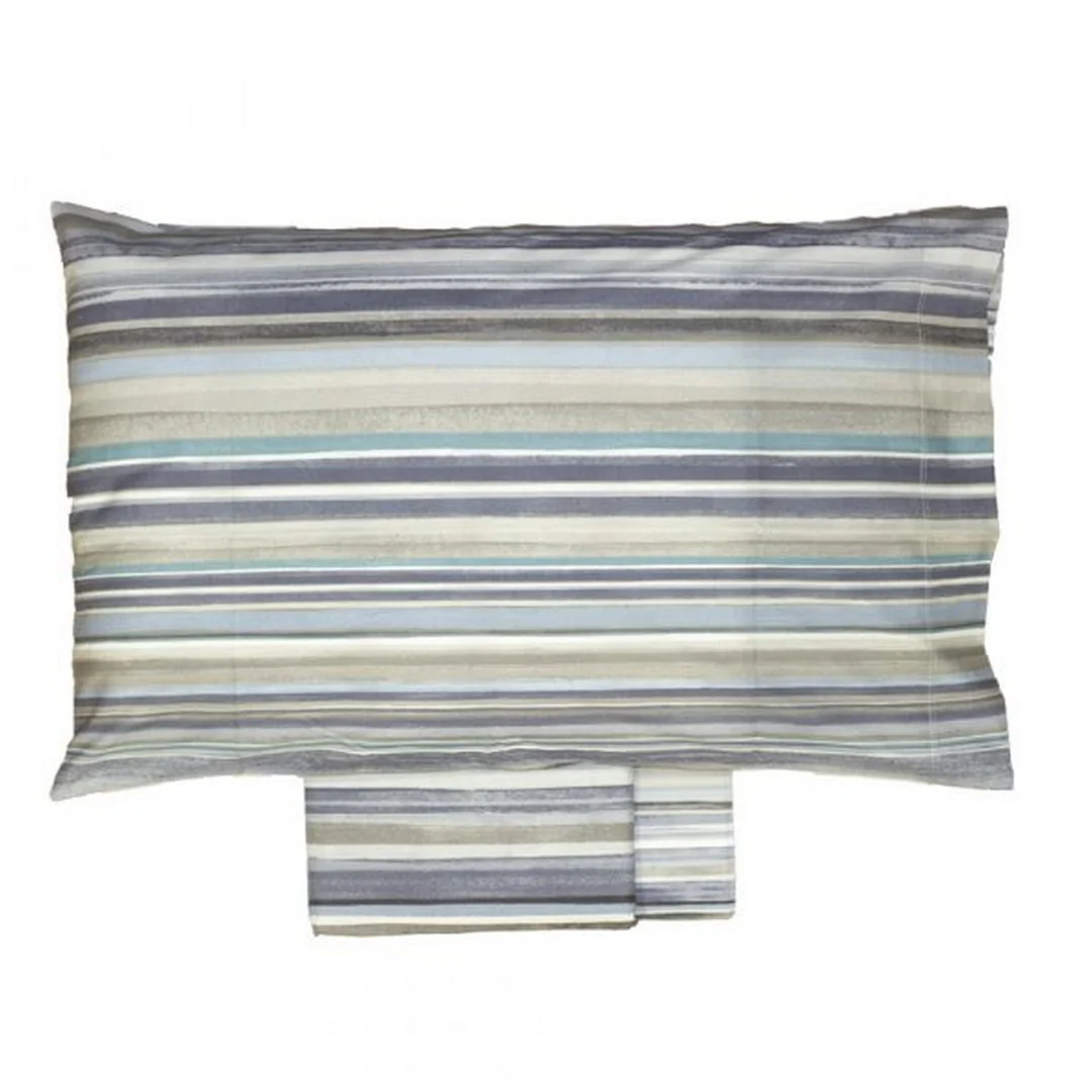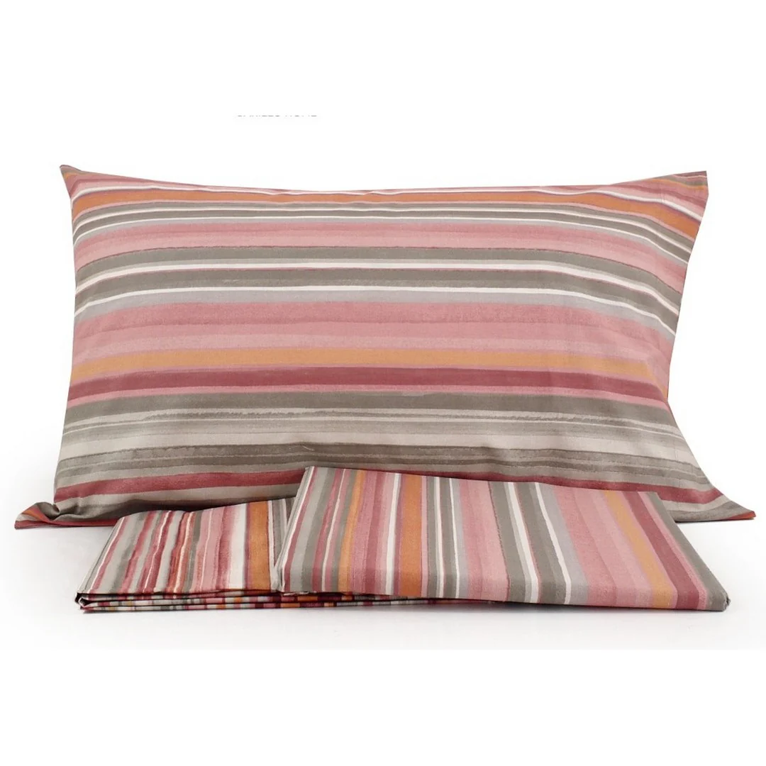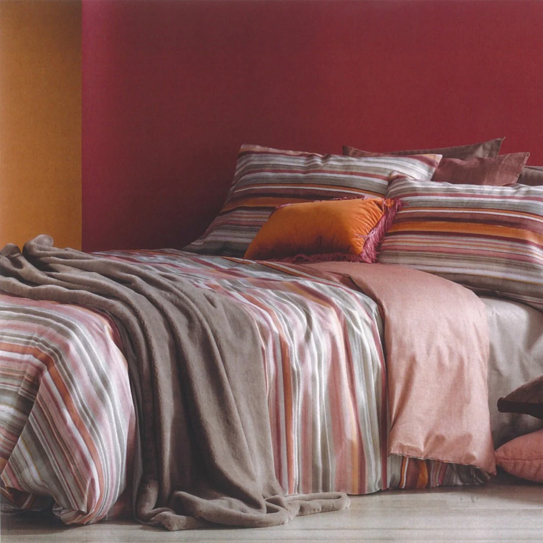 La stampa doubleface con fantasia rigata permette di cambiare look al letto in un attimo, semplicemente girando il sacco o le federe.