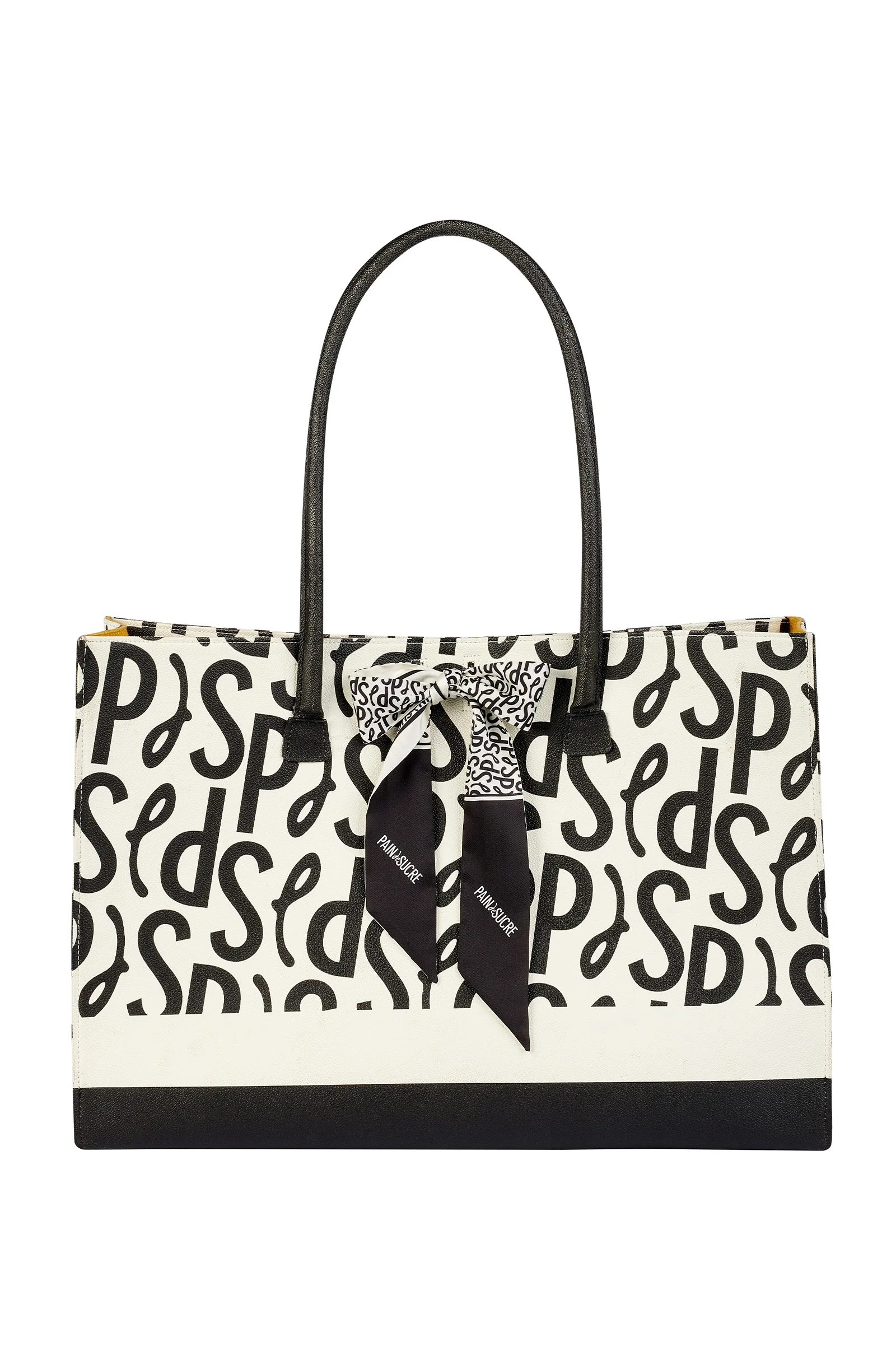 Large PdS Signature printed tote bag 60 cm black handles Closed with the coordinated MIA scarf by Pain de Sucre Interior lining in ocher cotton Dimensions 50 x 35 x 16 cm Main material: 69% imitation leather, 17% polyester, 11% cotton, 3% polyurethane / Lining: 100% cotton / Scarf: 100% polyester Functional and elegant, the […]