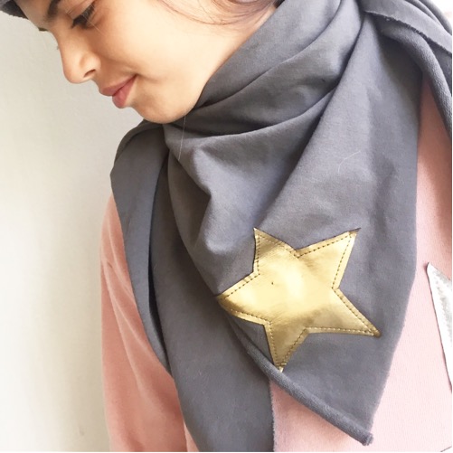 Sciarpa modello bandana a triangolo in felpa con applicazione stella in tessuto. Colori base sciarpa: bianco, blu, nero, grigio, rosa. Colori tessuto stella: nero, grigio, bianco, blu, rosa, tortora, scozzese, pied de poul, oro, argento, ecopelle nero. Crea la tua sciarpa. Seleziona il colore della sciarpa e scrivi nelle note il colore che preferisci per la stella. TAGLIA UNICA PRODOTTO PERSONALIZZATO. NON E’ POSSIBILE EFFETTUARE IL RESO.