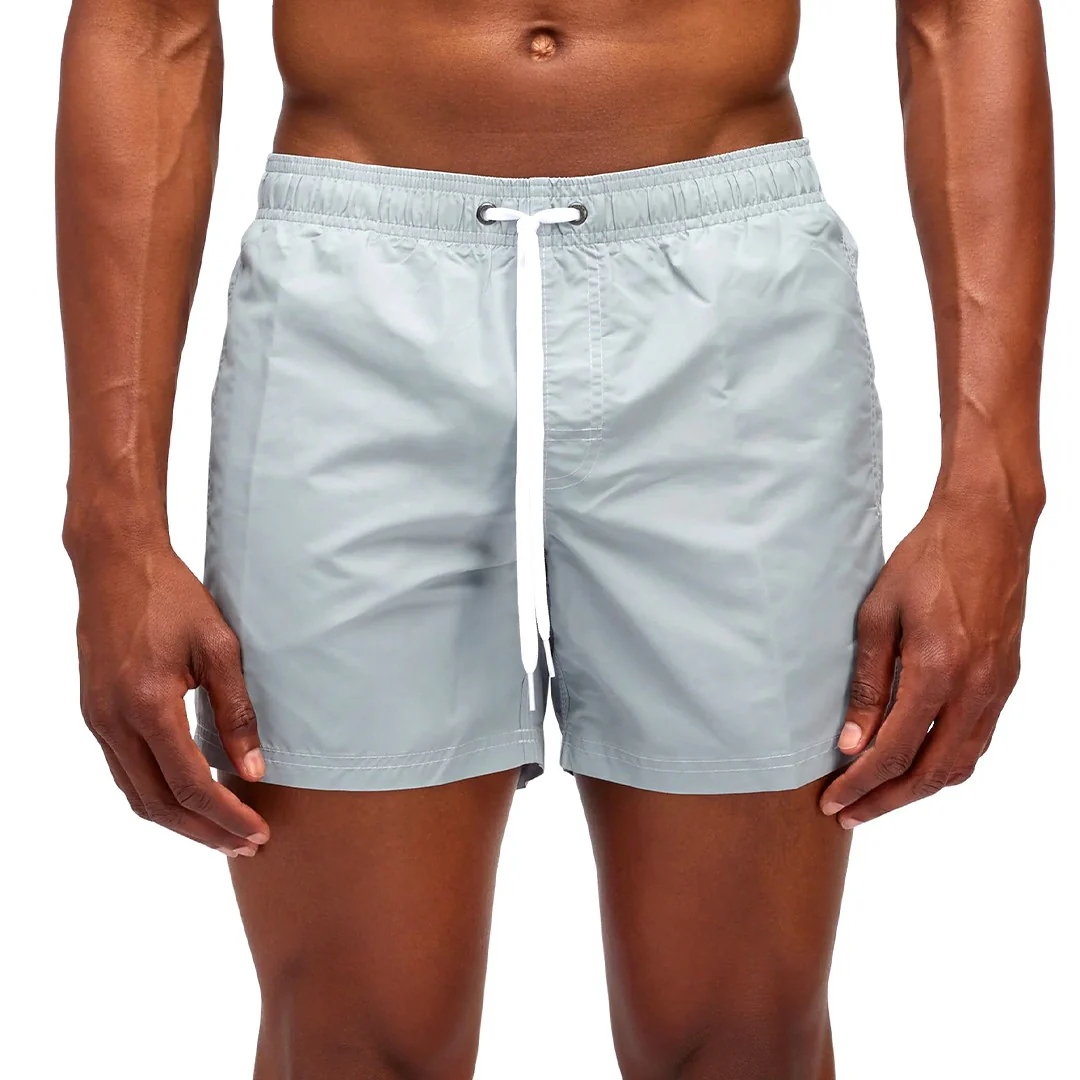 Shorts uomo mare corto e con vita elasticata, coulisse e iconico arcobaleno Sundek sul retro. Questo costume è realizzato con cuciture a tre aghi e al 100% con il nostro tessuto storico, il nylon-taffetà: liscio come la seta, leggero e resistente a tutto, si asciuga velocissimo per darti comodità ovunque, tra le onde e fuori dall’acqua. Lunghezza 35 cm (taglia M), misurati sul lato esterno della gamba.