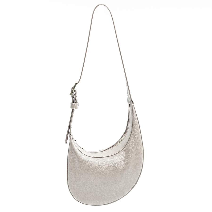Borsa a sella solo con tracolla regolabile in pelle. Chiusura a zip. Interno foderato con tasche. Accessori colore oro.