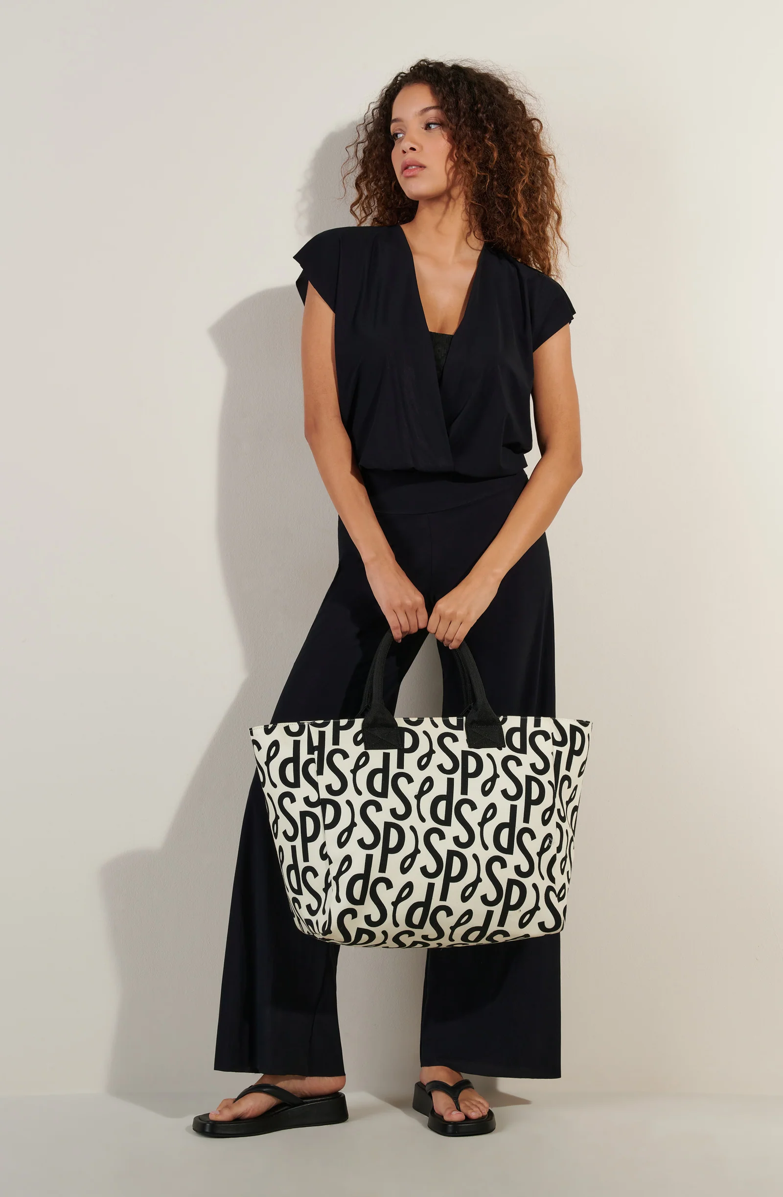- Large “Signature PdS” printed trapeze bag