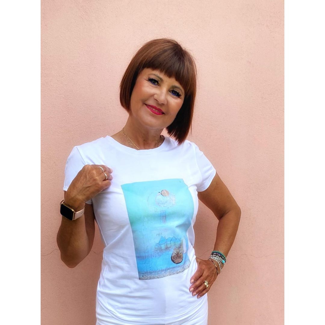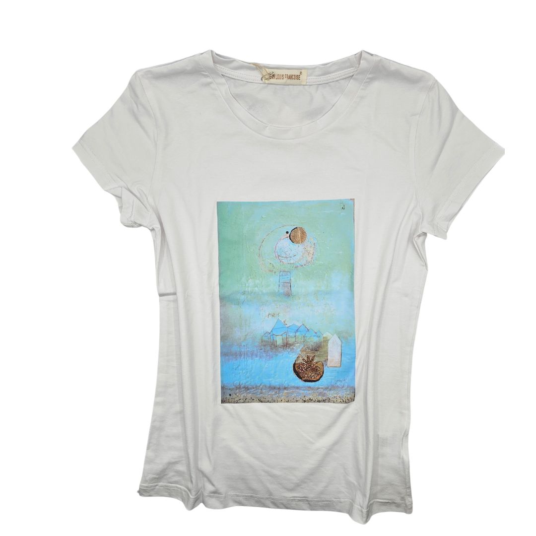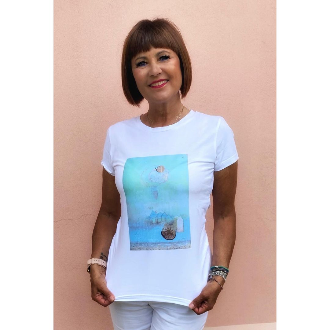 t-shirt bianca in cotone “un quadro sulla t-shirt” – Seme di aria nuova