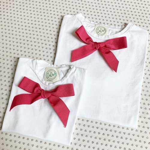 T-shirt con applicazione FIOCCO in Gros Grain. Crea la tua t-shirt! Seleziona taglia e colore della tua t-shirt e scrivi nelle note il colore del fiocco in velluto che preferisci. Colori t-shirt disponibili: rosa, grigio, bianco. Colore Fiocco Gros Grain: lilla, azzurro, fucsia, giallo, arancio, nero, blu. PRODOTTO PERSONALIZZATO. NON SI EFFETTUANO RESI