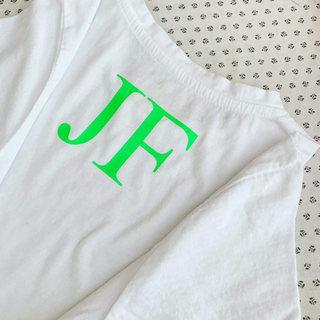 T-shirt bianca a maniche corte, personalizzata con le tue iniziali. 100% cotone. Vestibilità morbida. Scrivi nelle note le tue iniziali e il colore che hai scelto per la stampa. Puoi scegliere tra i colori elencati sotto. Colori opachi: bianco, panna, cioccolato, caffellatte, bluette, verde, rosso, rosa, celeste, grigio, fucsia. Colori laminati: oro, argento, bronzo, rosa. Colori glitter: oro, argento chiaro, argento scuro, bronzo, viola, fucsia, bianco, multicolor, caffè, bluette, verde, rosso, rosa, celeste, multicolor. Colori fluo: verde, giallo, fucsia, arancione. PRODOTTO PERSONALIZZATO. NON E’ POSSIBILE EFFETTUARE IL RESO.
