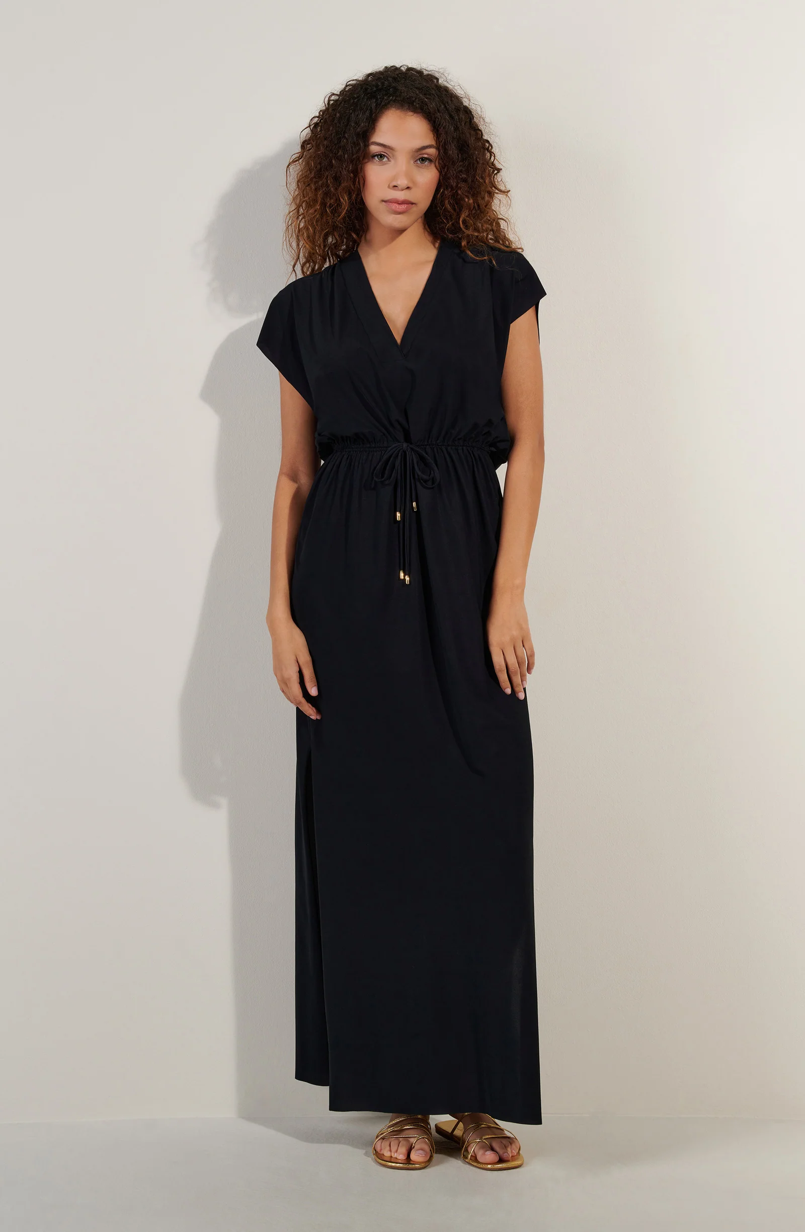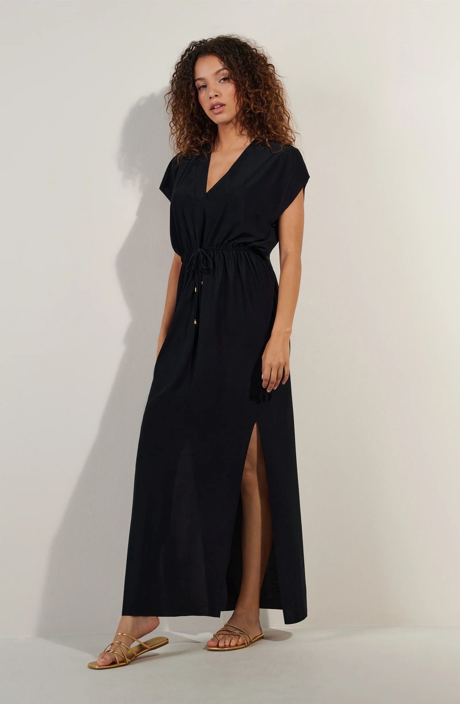 Long and loose, the light voile dress TAYA gives an airy silhouette. The floating armholes and the slits on the sides creates a feeling of freshness and total freedom. Black, a timeless colour that is always elegant.