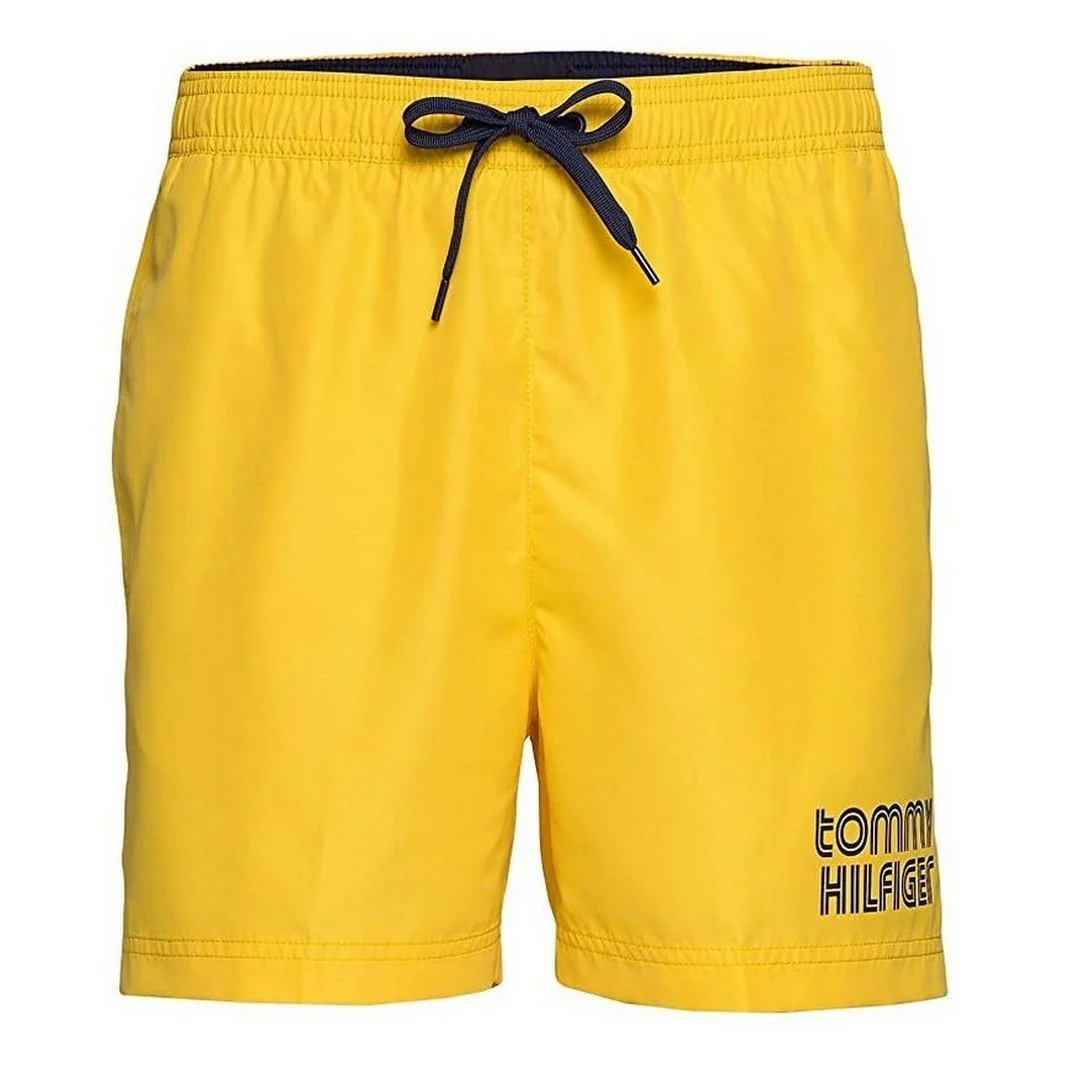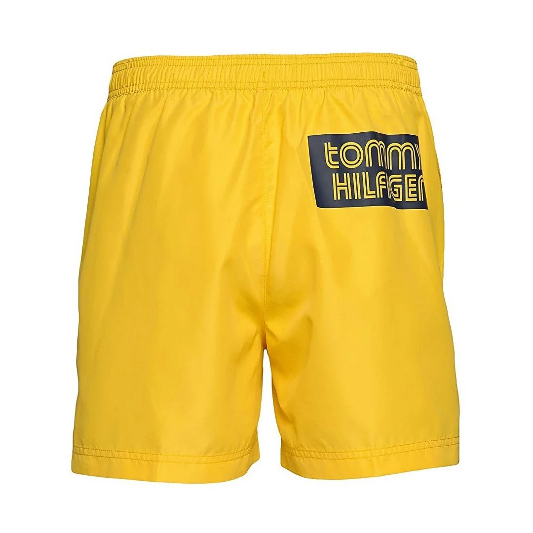 Costume da bagno da uomo Tommy Hilfiger in vivace colore giallo con dettagli multicolore.