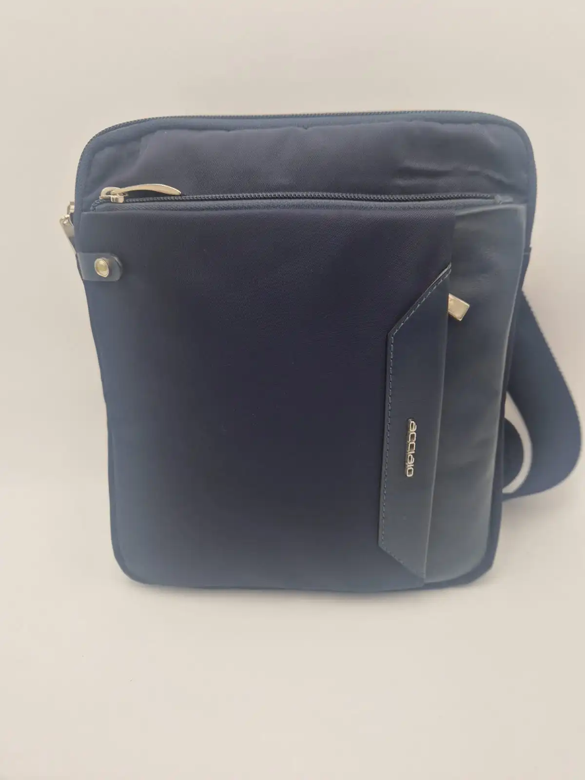 Tracolla Acciaio in tessuto con inserti in pelle. La tracolla è composta da una tasca grande , con all’ interno tasca con cerniera e tasca con la chiusura a strappo.Due tasche davanti esterne , molto capienti con chiusura con cerniera. La tracolla ha degli inserti in pelle sul davanti. Il tessuto è impermeabile . E’ molto capiente e pratica .Il suo design la rende utilizzabile su ogni look!