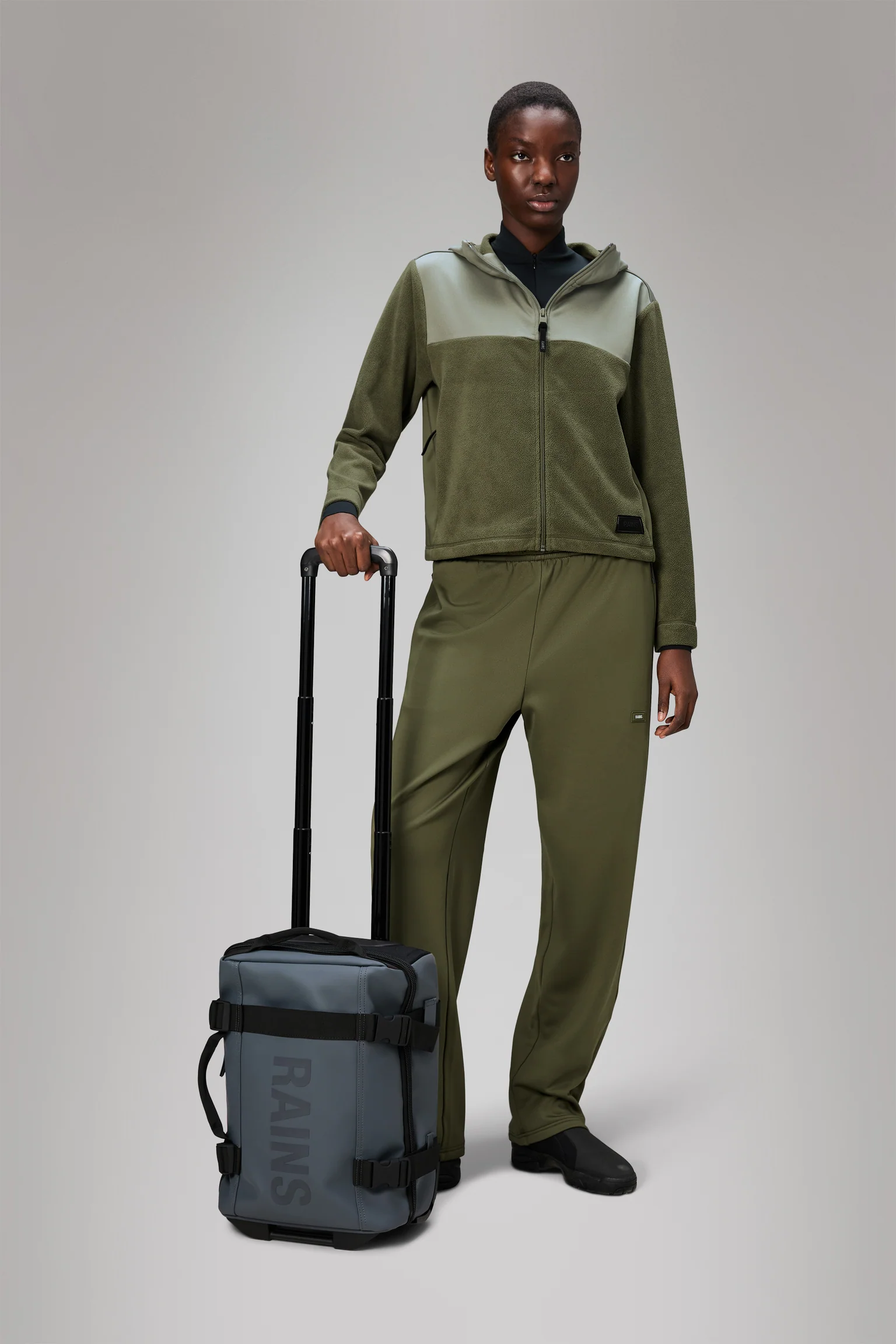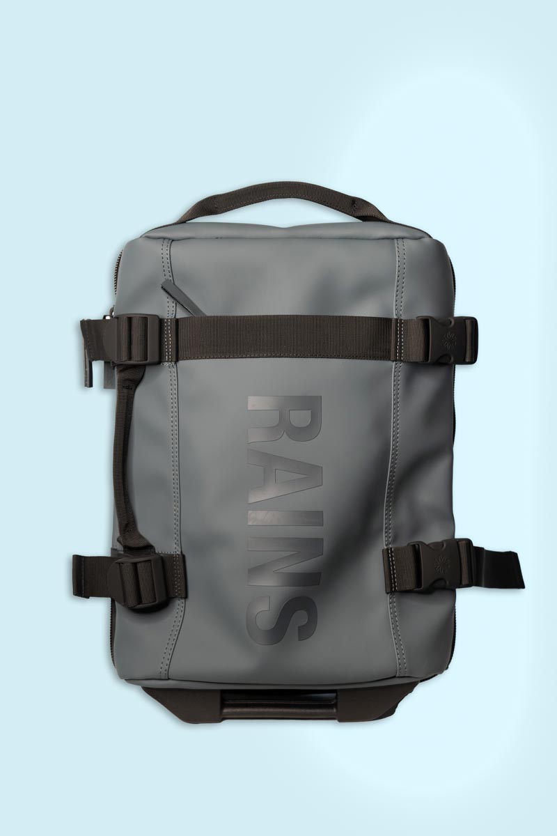 Rains Texel Cabin Bag Mini è “la proposta… per viaggiare leggeri” ed è progettata per rispettare i limiti di dimensioni del bagaglio a mano della maggior parte delle compagnie aeree È realizzata in tessuto PU impermeabile e un mezzo guscio rigido per offrire resistenza e maggiore stabilità in posizione verticale. Dimensioni: 45 cm x 20 cm x 31 cm