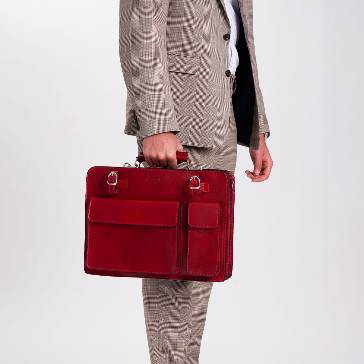 La ventiquattrore Urban in pelle Oxford rossa di Fantini Pelletteria è l’ideale per chi desidera un tocco di colore nel proprio look. Il rosso vivace è ideale per esprimere personalità e stile. Con tasche interne ben organizzate e una chiusura con cerniera, questa borsa custodisce in modo sicuro gli oggetti essenziali, perfetta per aperitivi o incontri di lavoro.