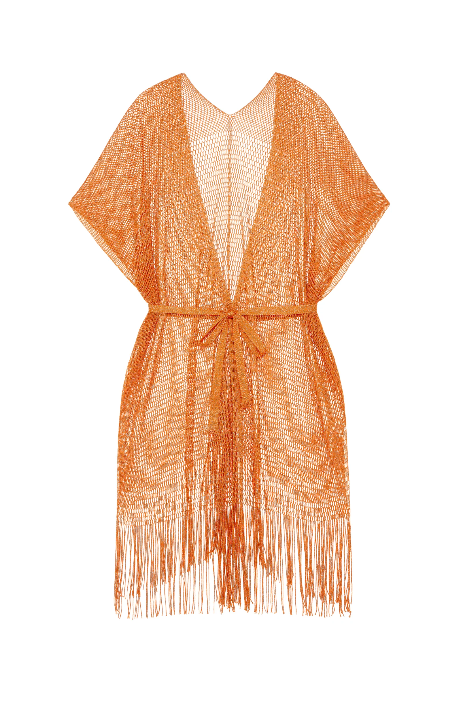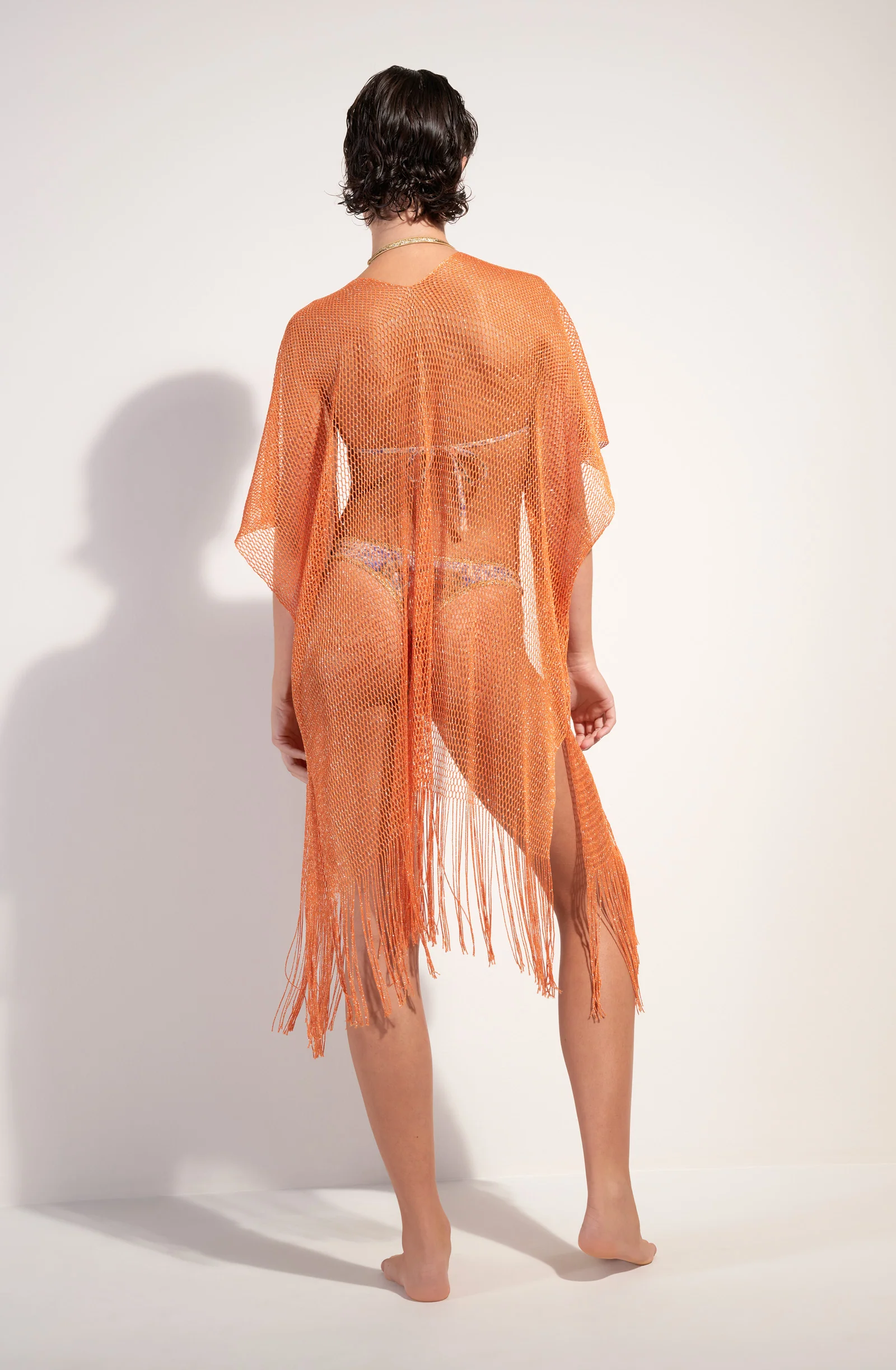 Fringed kimono jacket Shimmering mesh knit Thin removable belt Openwork belt loops on the sides at the back The model is 1m76 tall and wears size XS (Bust: 83 cm, Waist: 62 cm, Hips: 91 cm)