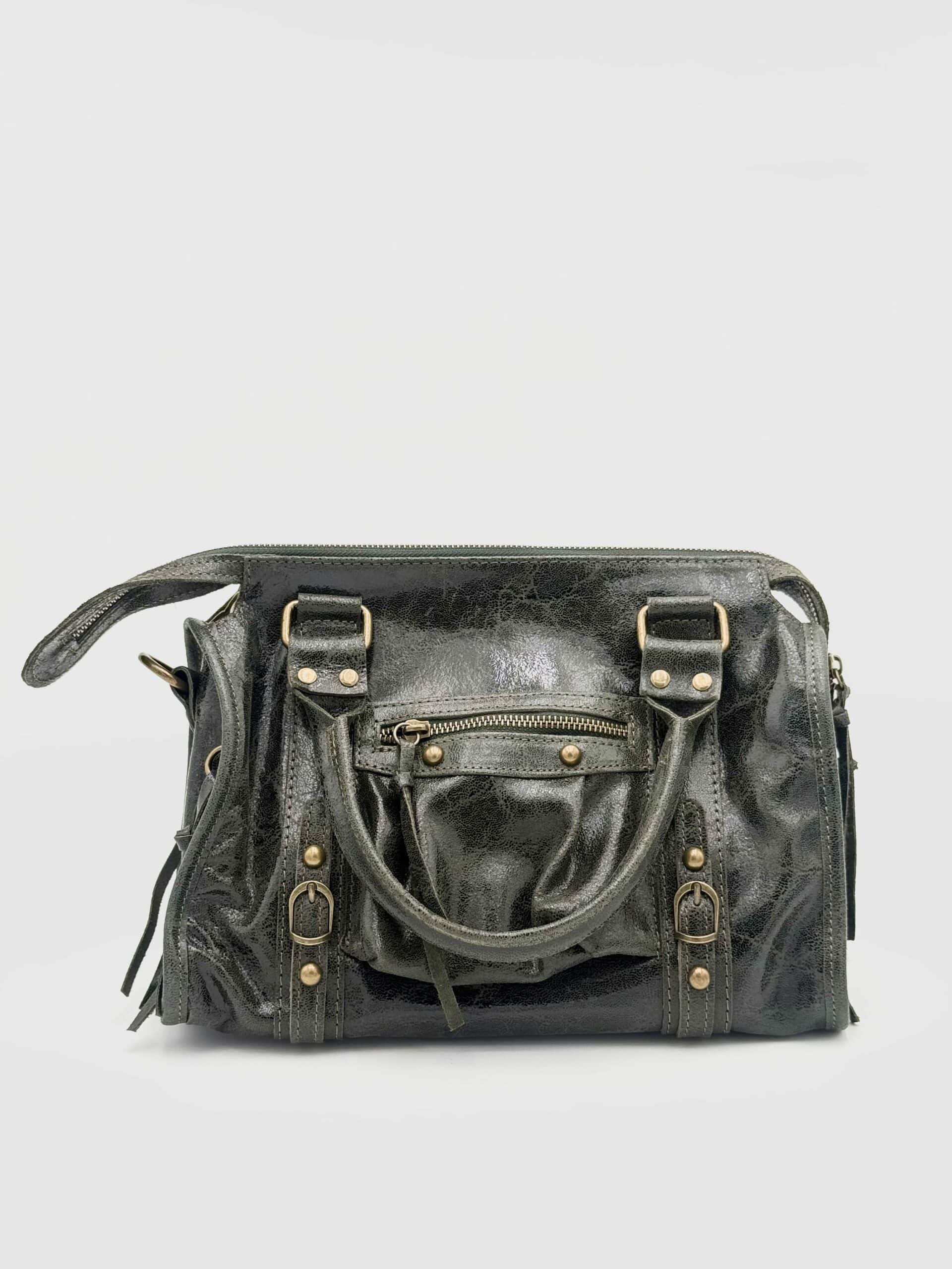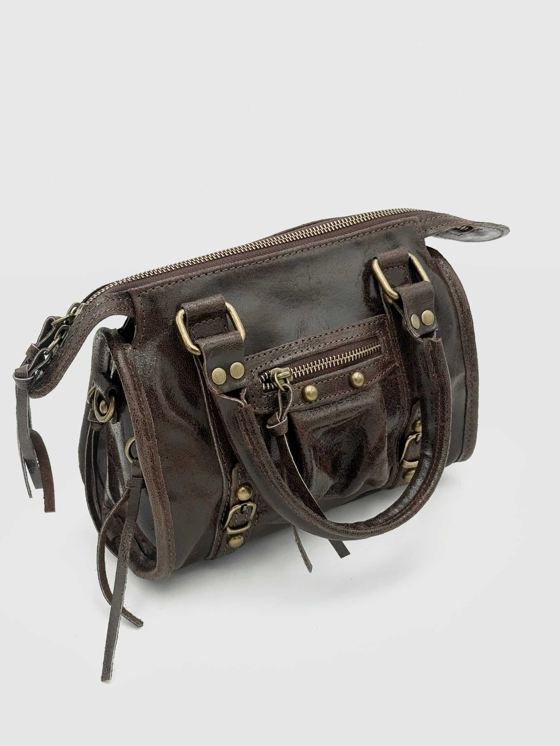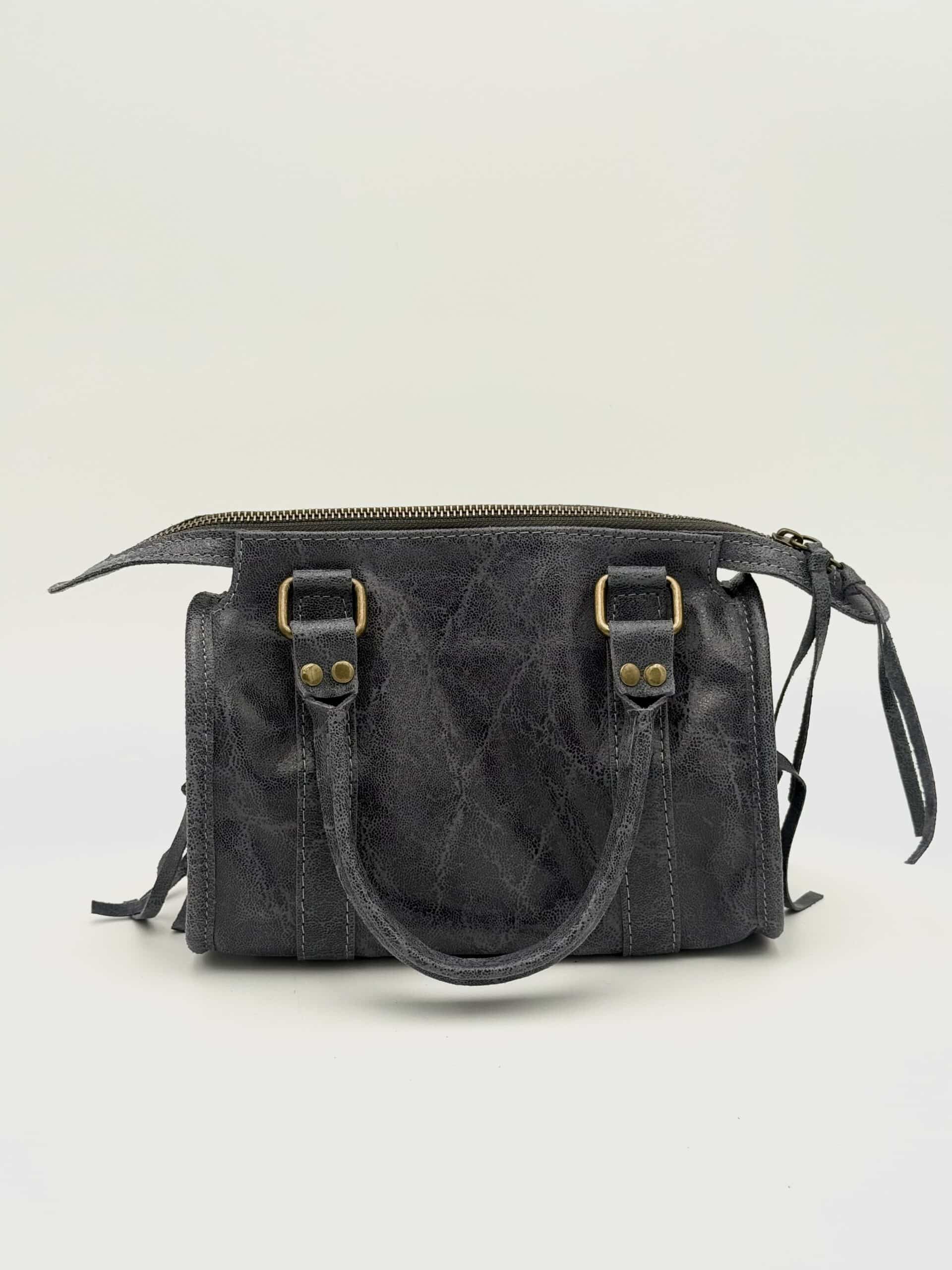 Realizzata in pregiata pelle di vitello conciata al vegetale e successivamente lavata, questa borsa si distingue per il suo aspetto più materico e vissuto. Il trattamento di lavaggio dona al pellame una mano ancora più morbida e una texture naturalmente irregolare, esaltandone la personalità e rendendo ogni pezzo unico.