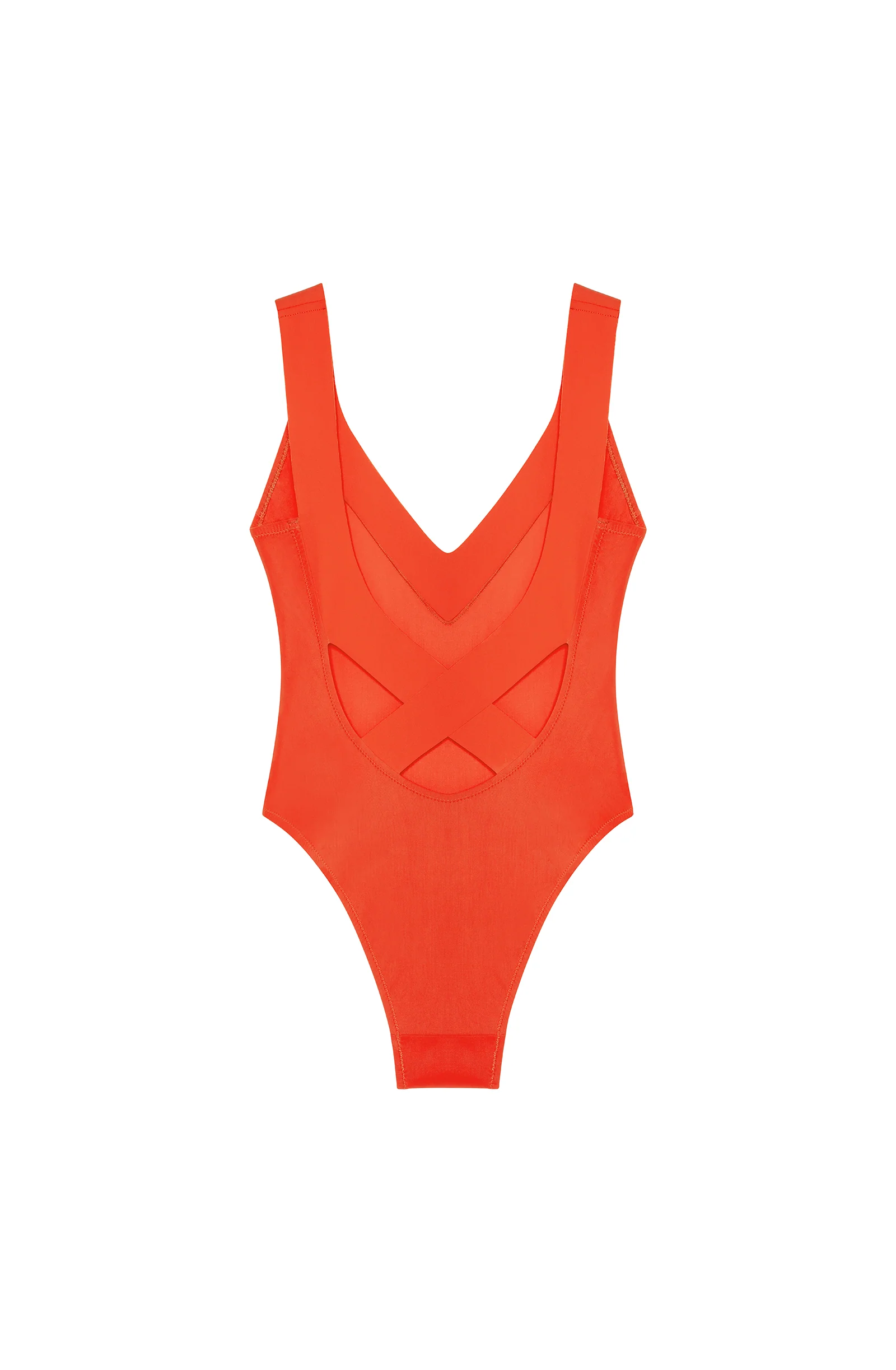 With its wide crossed straps at the back, the YAO swimmer swimsuit evokes the iconic SOYA model. A tribute to femininity, this graphic design stands out with its high-cut and a plunging neckline. Orange, a modern and intensely zesty colour.