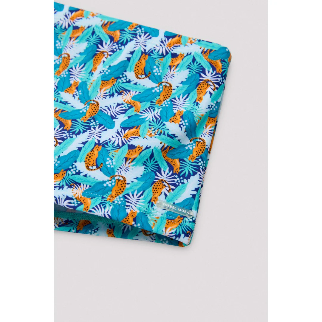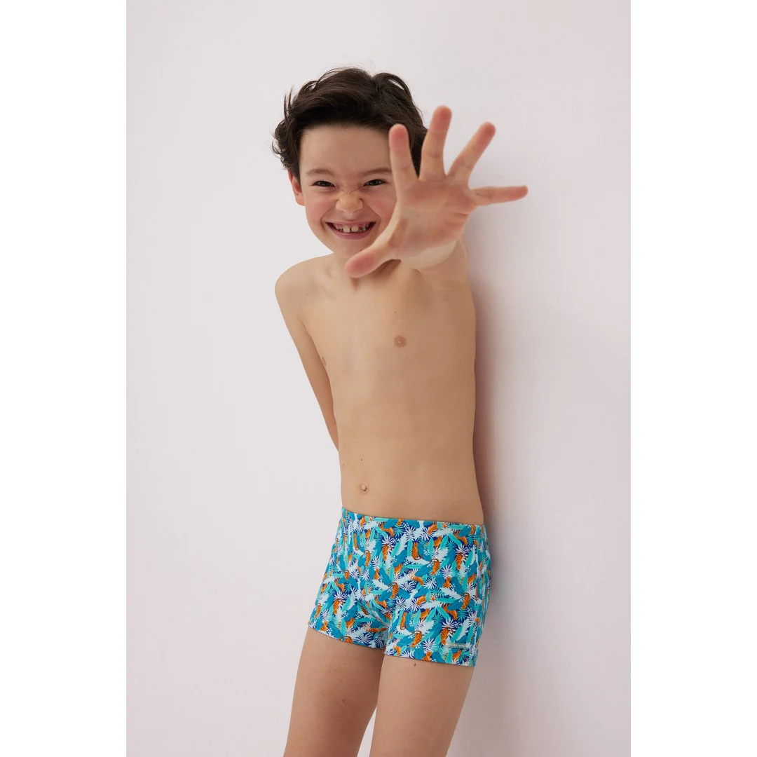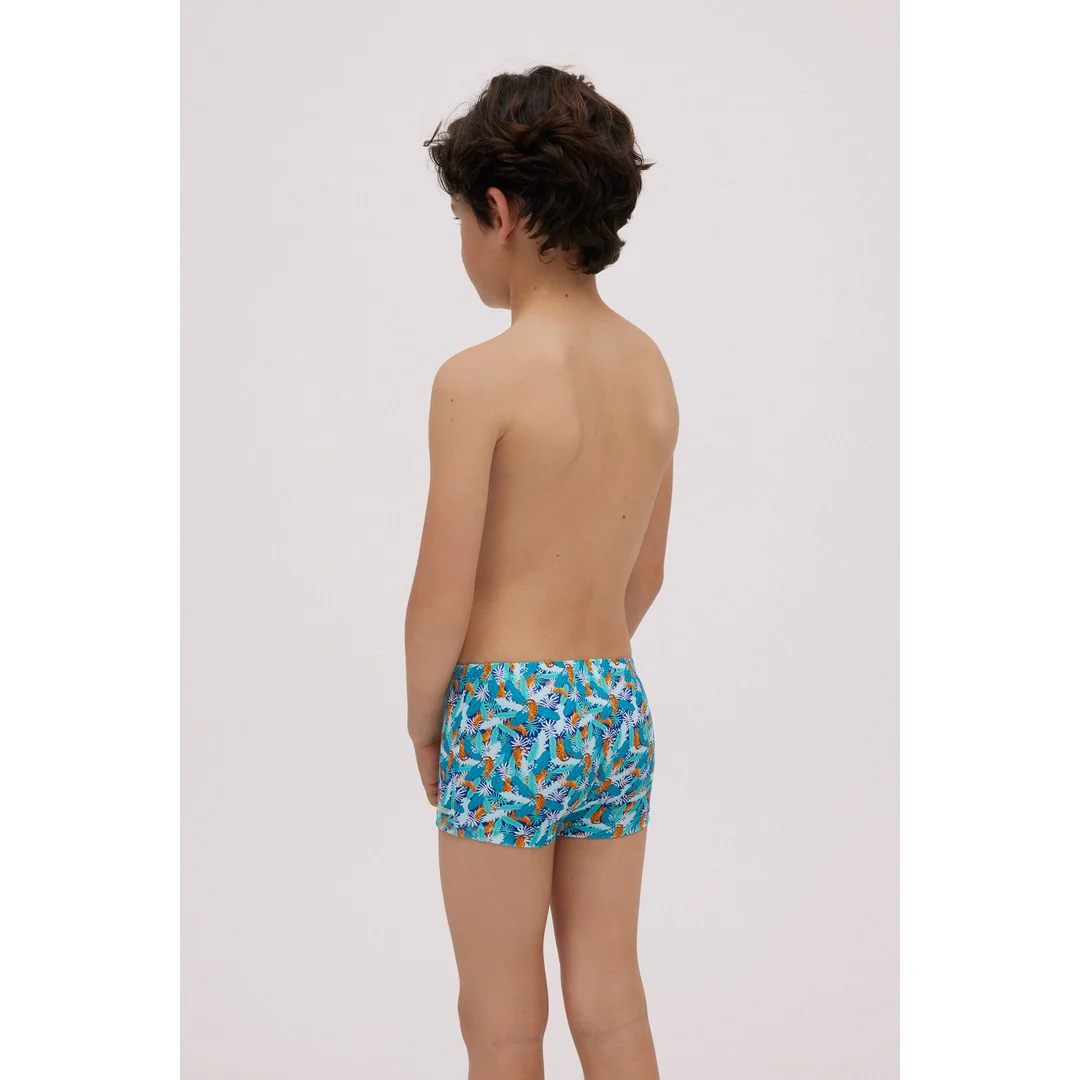 Costume da bagno boxer per bambini con stampa di leopardo.Abbinalo a una t-shirt abbinata. CuraLavaggio a a manoNon usare candegginaNon asciugare in asciugatriceNon stirare
