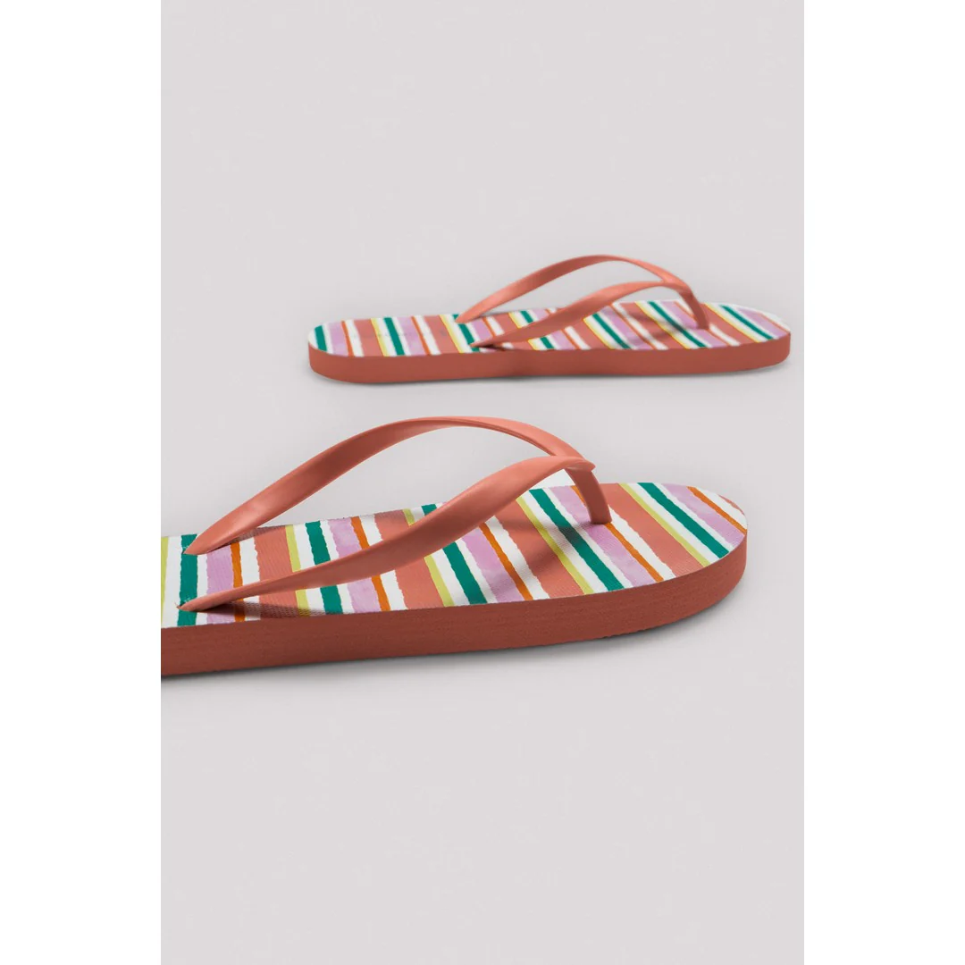 Infradito dal design a righe. Pensato per essere utilizzato ovunque e ideale da abbinare ad abiti estivi casual, come vestiti, pantaloncini o gonne. 100% Cloruro di polivinile