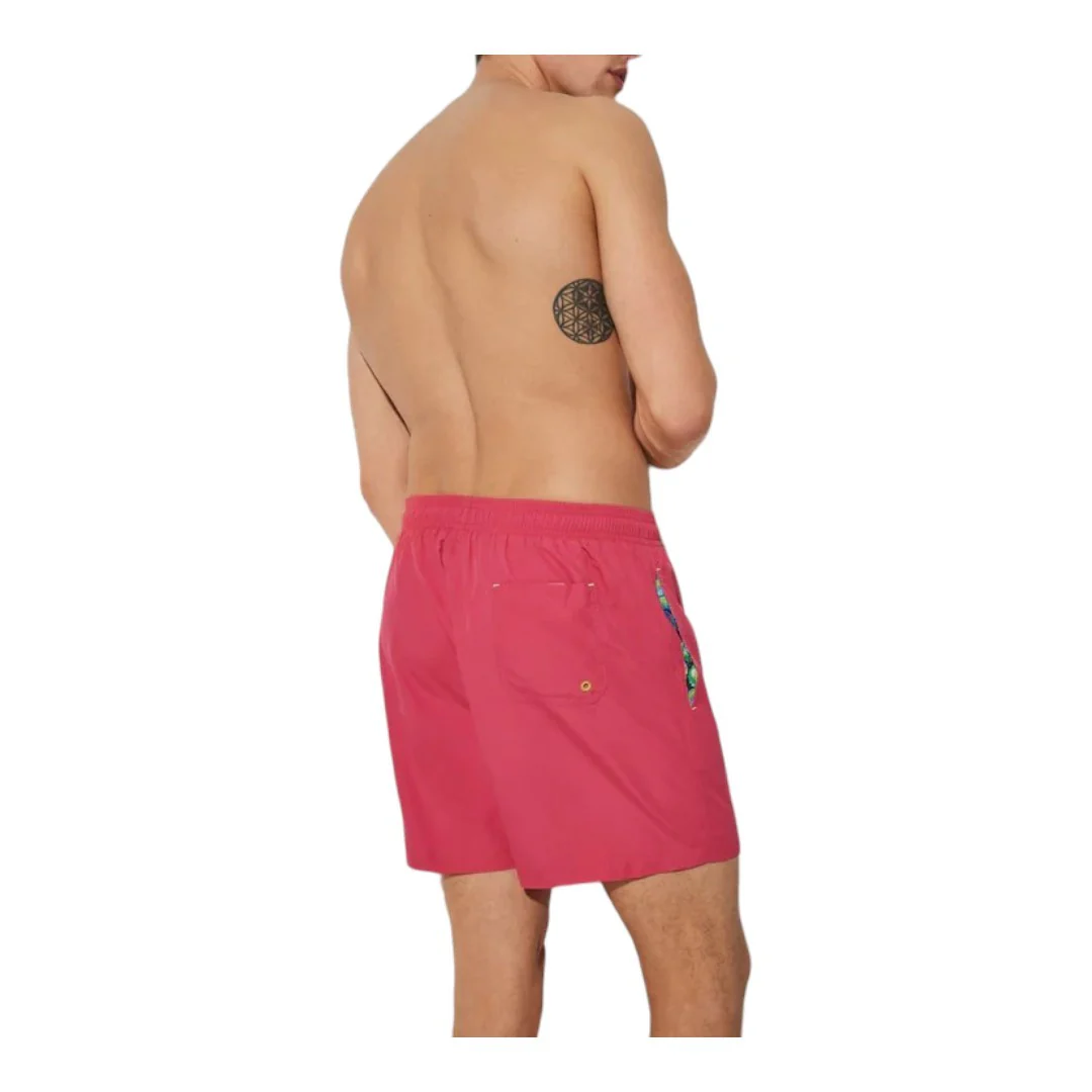 Collezione di costumi da bagno di Sockarrats. Costume da bagno da uomo di media lunghezza. Tessuto ultraleggero ad asciugatura rapida. Stampa a tinta unita.