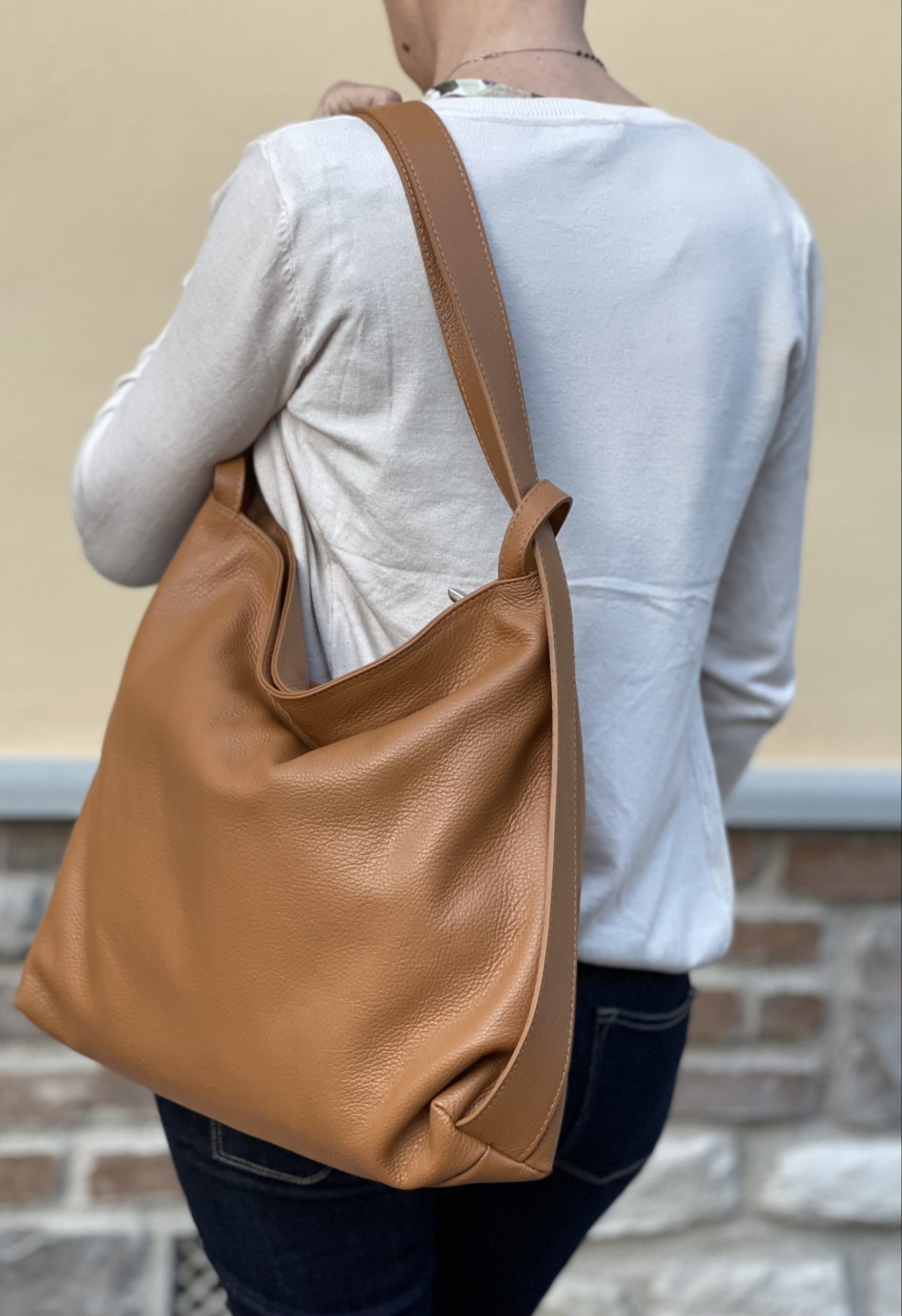 Lo Zaino borsa ย Vera Pelle ย puรฒ essere indossato sia ย a borsa e si trasforma facilmente in un pratico zaino.
