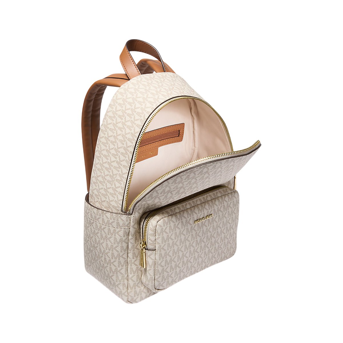 Lo zaino Tanner panna di Michael Kors si distingue per la sua eleganza sobria e il design funzionale. Perfetto per ogni occasione, offre una chiusura a zip che garantisce la sicurezza delle tue cose. La nuance chiara emana luminosità e freschezza, mentre i dettagli metallici delicati valorizzano la sua estetica raffinata.