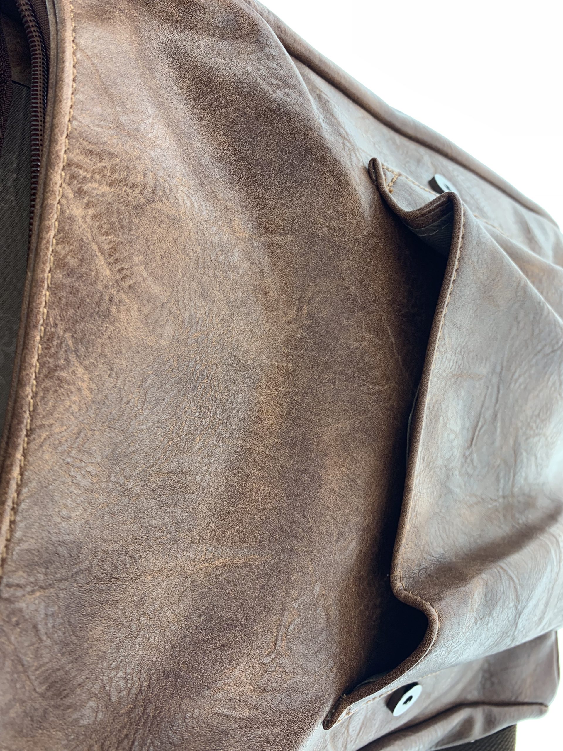 Un altra tasca chiusa con bottone a calamita nella parte anteriore dello zaino con altezza 21 cm e larghezza 18 cm.